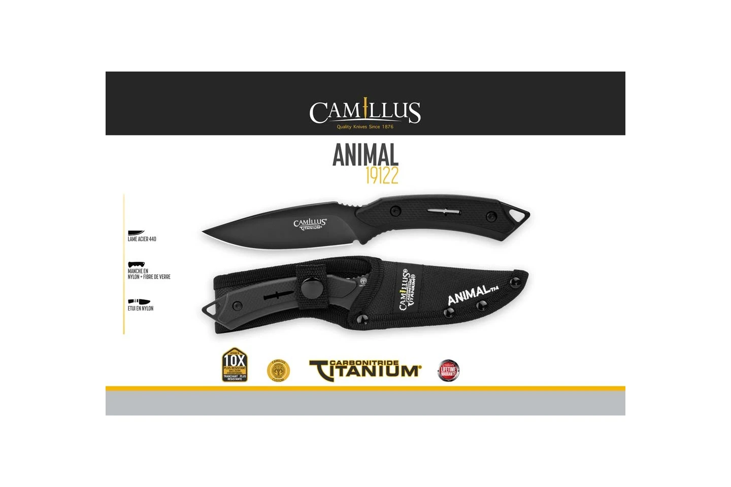 Camillus 19122 Animal – Couteau à Lame Fixe 19,7cm