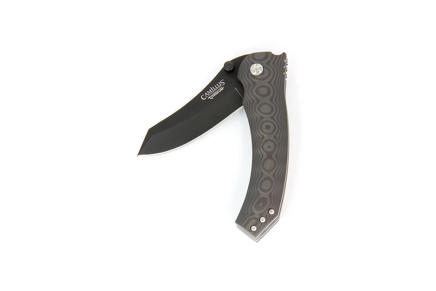 Le Camillus Jolt est un couteau pliant d’une haute qualité grâce à sa lame en acier D2 traitée avec du Carbonitrure de titane ce qui la rend jusqu’à 10 fois plus robuste qu’une lame classique sans traitement. Aussi, la lame dispose d’un mécanisme Liner Lock permettant le verrouillage de celle ci. En plus de ça, le couteau est très agréable en main avec son manche en fibre de Carbone custom.