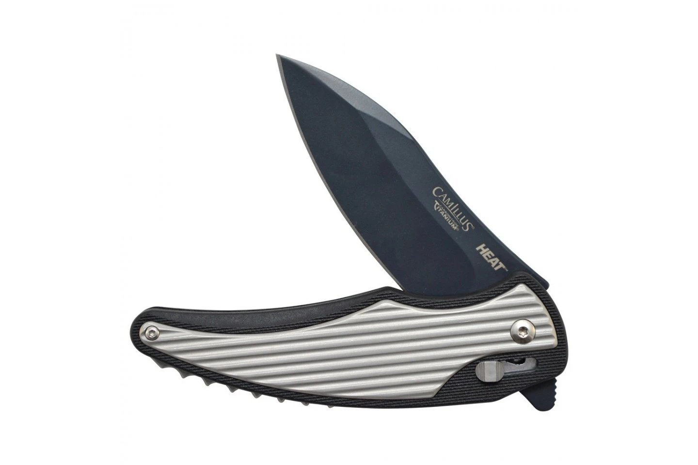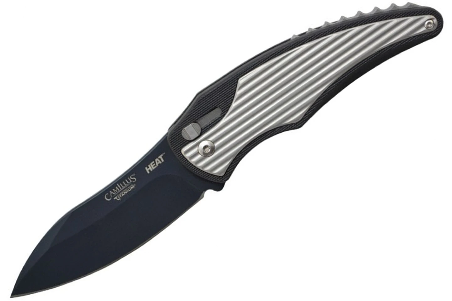 Le Camillus Heat est couteau pliant dont le design a été fait par G&G Hawke USA. Avec ce couteau vous disposez du système d’assistance Robo afin qu’il puisse être ouvert d’une seule main. Sa lame est réalisée en acier japonais AUS-8 et traitée avec la technologie du Carbonitrure de Titane. Son manche est conçu en nylon et acier inoxydable ce qui rend sa prise en main très agréable.