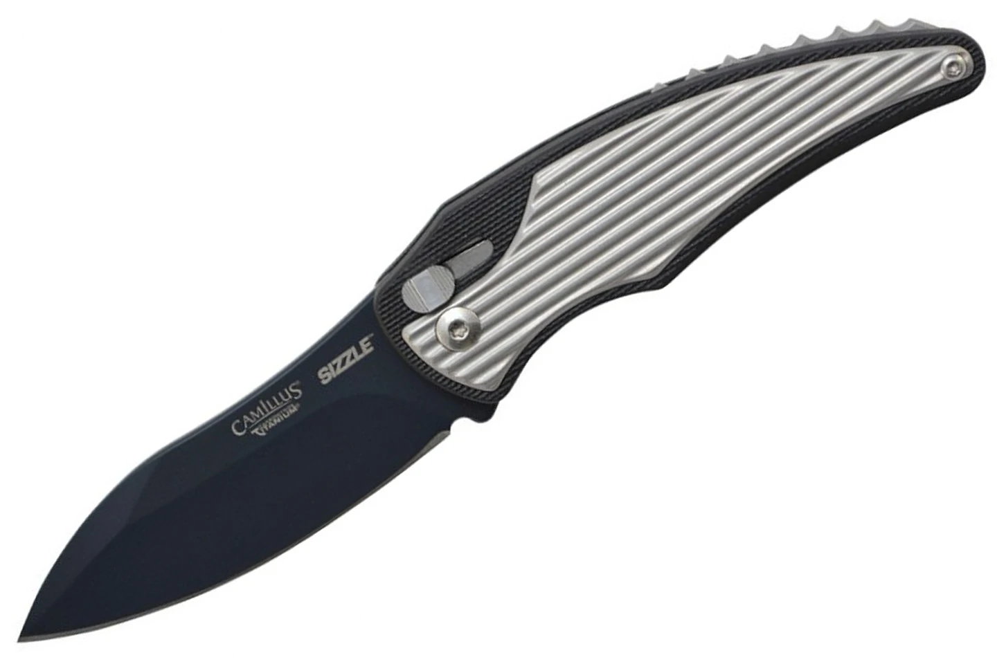 Le Camillus Sizzle est couteau pliant dont le design a été fait par G&G Hawke USA. Avec ce couteau vous disposez du système d’assistance Robo afin qu’il puisse être ouvert d’une seule main. Sa lame est réalisée en acier japonais AUS-8 et traitée avec la technologie du Carbonitrure de Titane. Son manche est conçu en nylon et acier inoxydable ce qui rend sa prise en main très agréable.