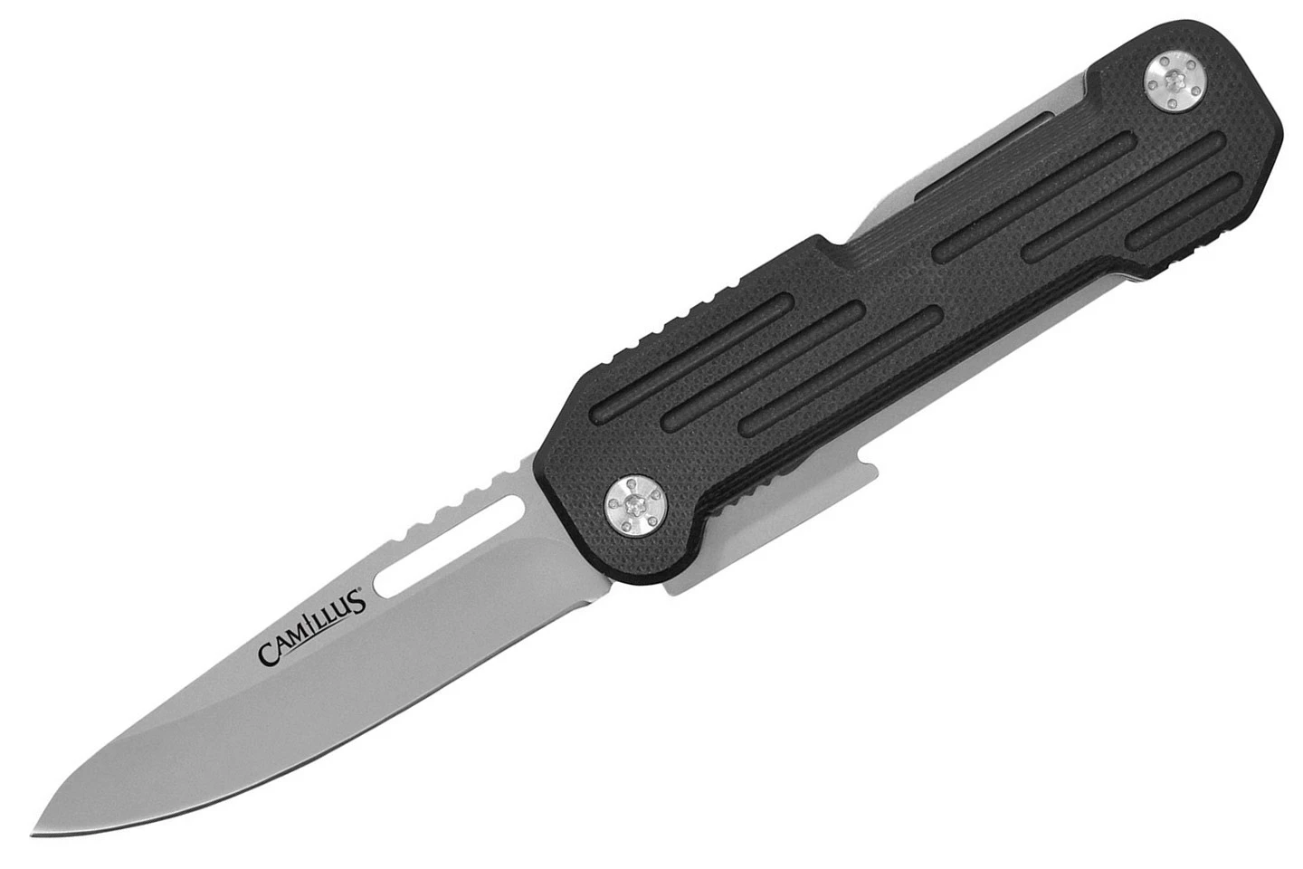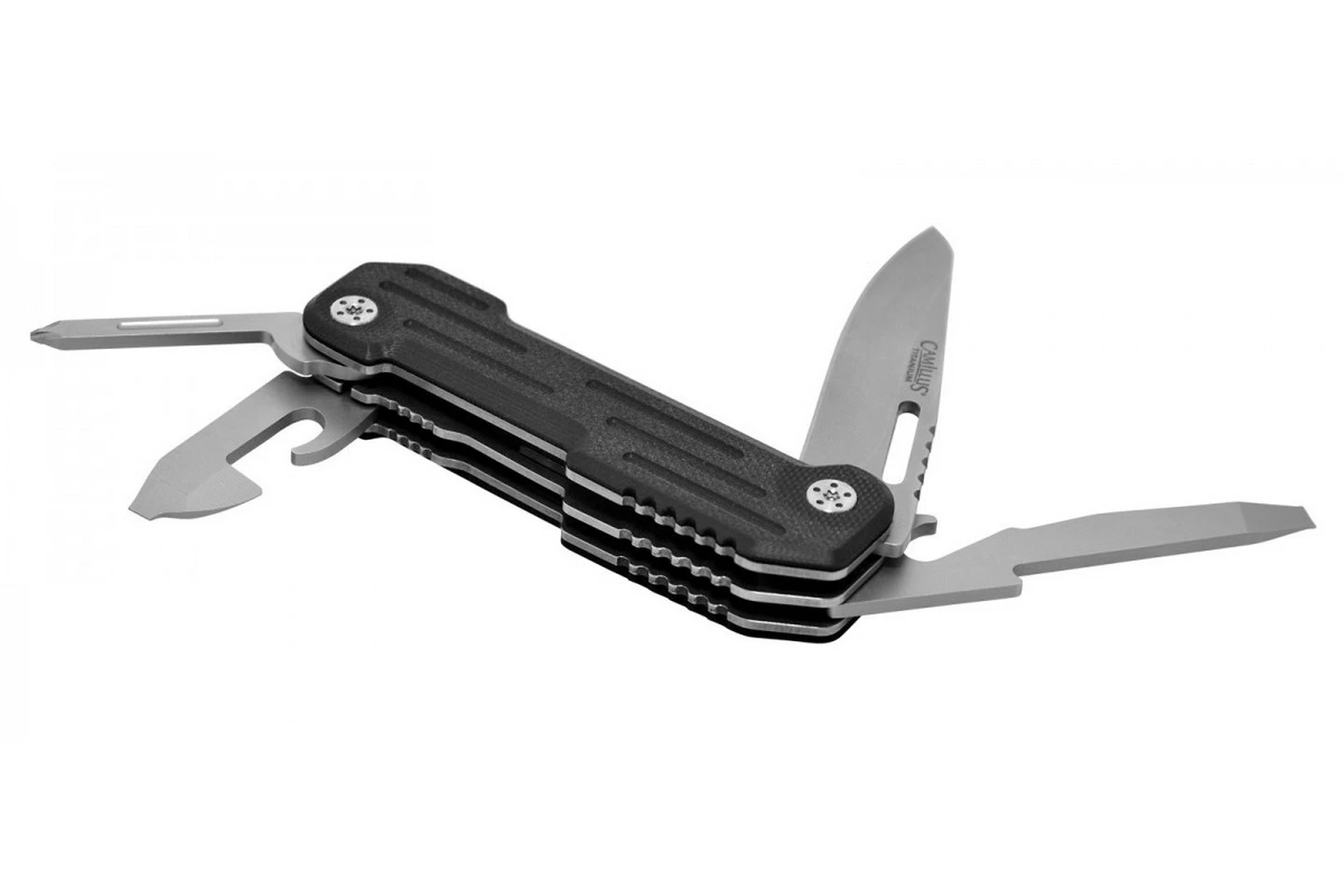 Le couteau pliant Camillus Pocket Block comprend une lame en acier 420, solide et facile à réaffûter. Son manche est en G10. Ce couteau de poche comprend 5 outils: couteau, ouvre-bouteille, tournevis à tête plate, ouvre-boîte et tournevis cruciforme. Il vous offre de multiples fonctionnalités utiles pour un usage quotidien.