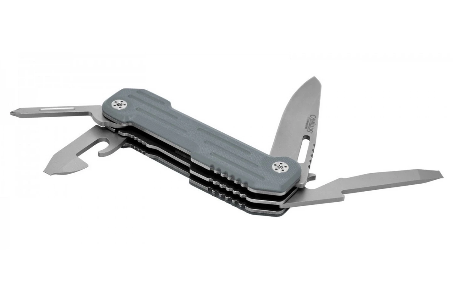 Le couteau pliant Camillus Pocket Block comprend une lame en acier 420, solide et facile à réaffûter. Son manche est en G10. Ce couteau de poche comprend 5 outils: couteau, ouvre-bouteille, tournevis à tête plate, ouvre-boîte et tournevis cruciforme. Il vous offre de multiples fonctionnalités utiles pour un usage quotidien.
