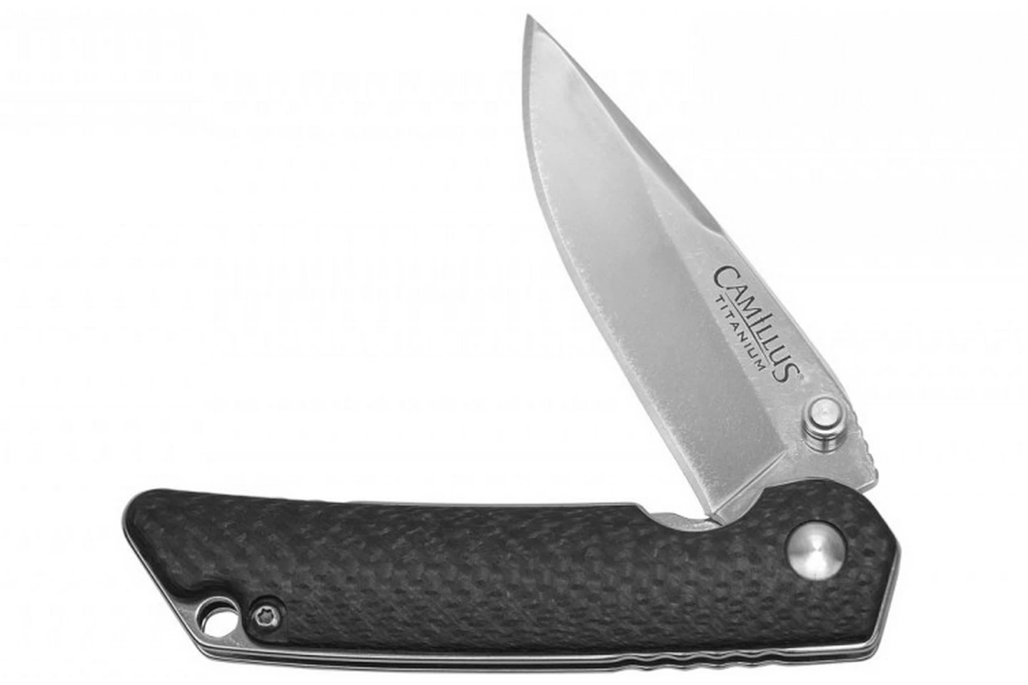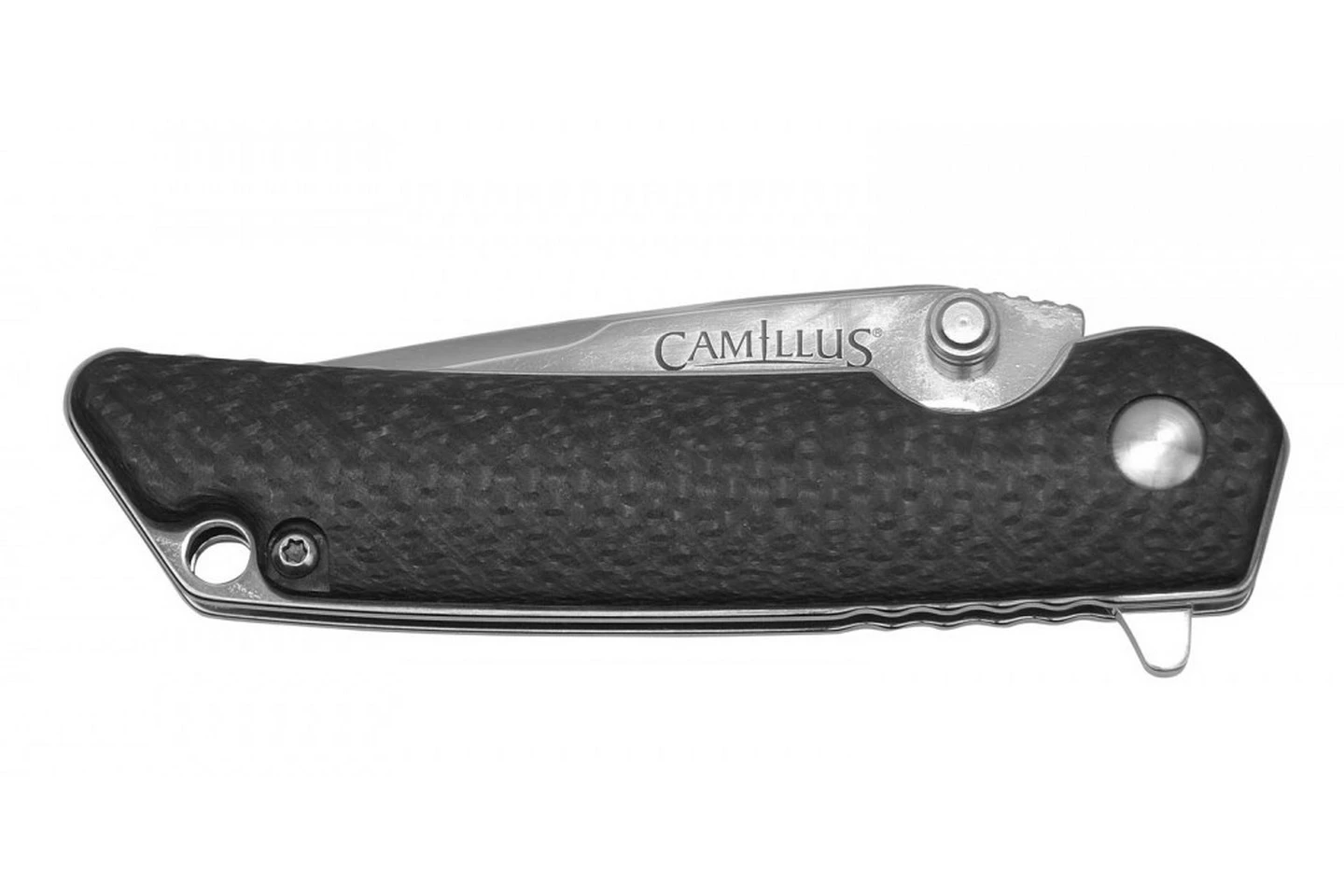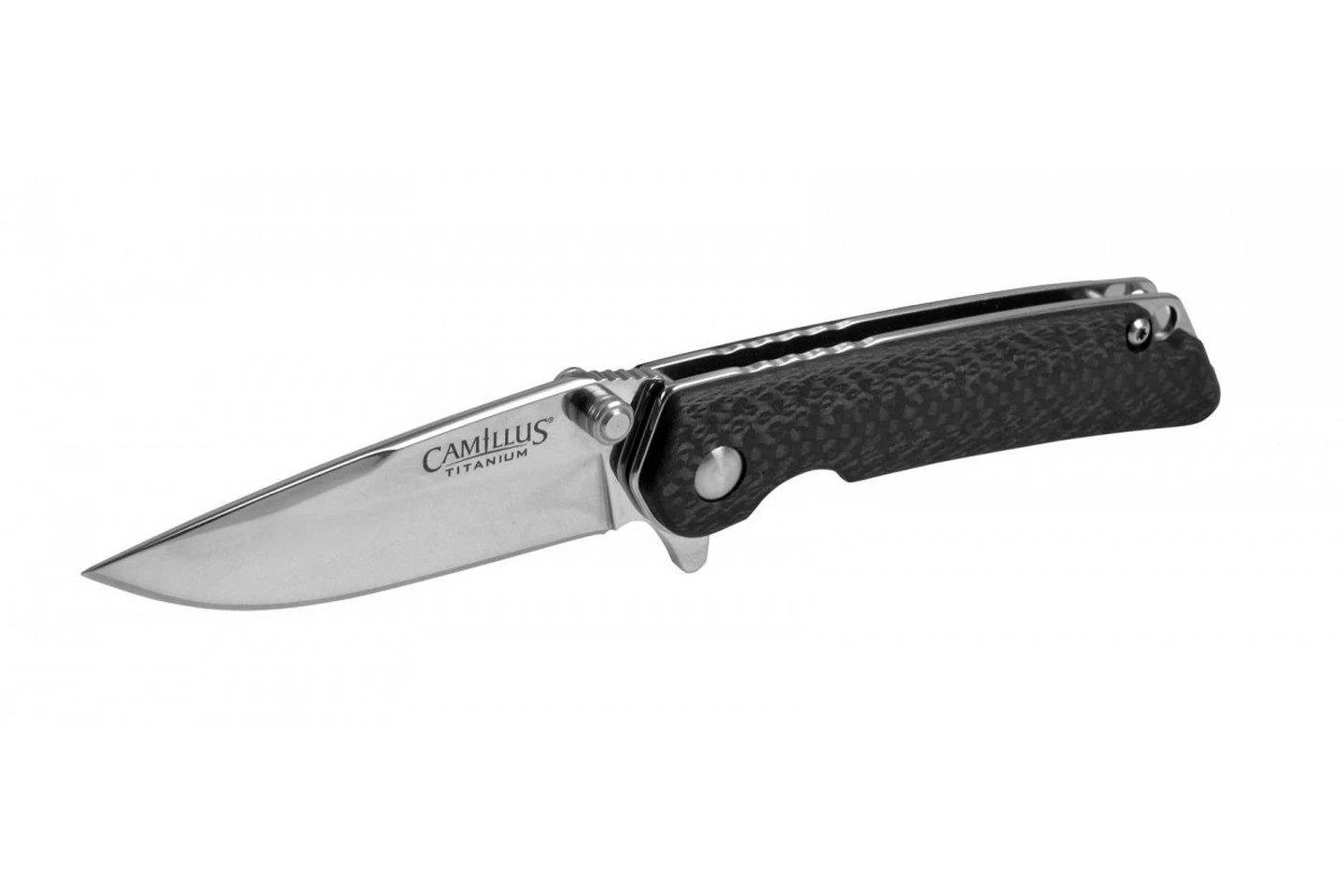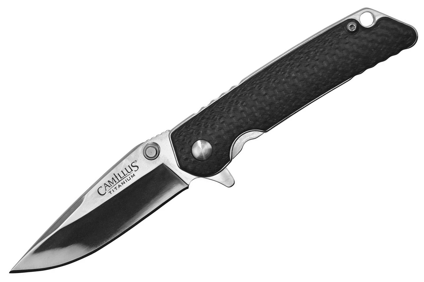 Le Camillus TRC a été conçu pour être à la fois robuste et fiable. Il est doté d’une lame en acier inoxydable VG10 traitée au titane qui a été polie pour une finition miroir. Le manche est constitué d’acier et de fibre de carbone pour une prise ergonomique. Mesurant 9,5cm fermé, il est facilement transportable. Lorsqu’il est ouvert, sa taille totale est de 17cm, avec une lame drop point de 7,6cm.