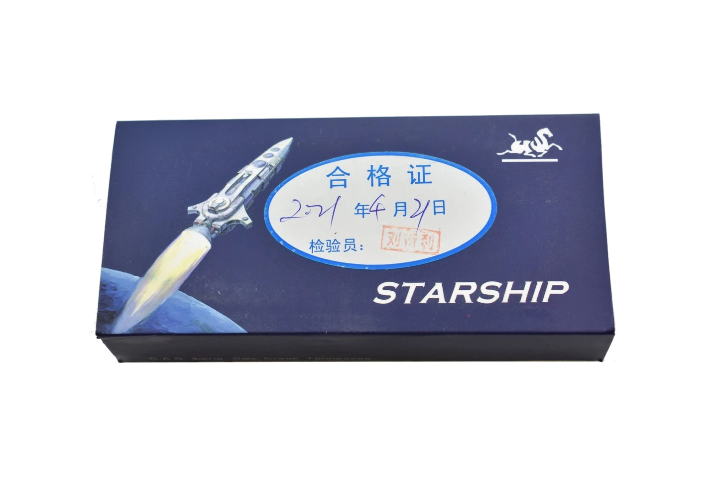 Le Starship est équipé d’un clip de ceinture, et fourni dans une boite arrondie en bois.