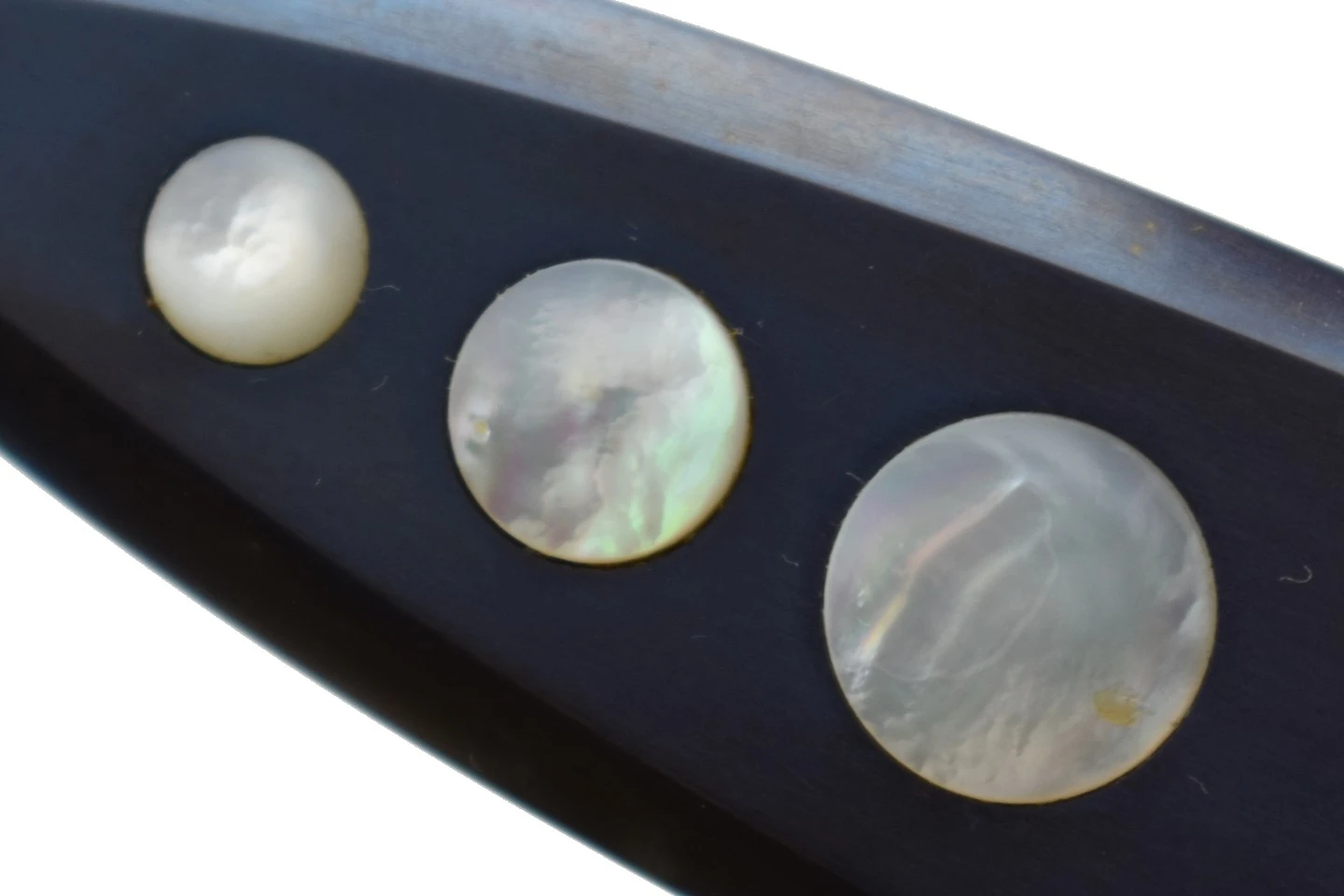 Le manche comprend des inserts en nacre qui donne une impression de relief et rappellent la surface de la lune.