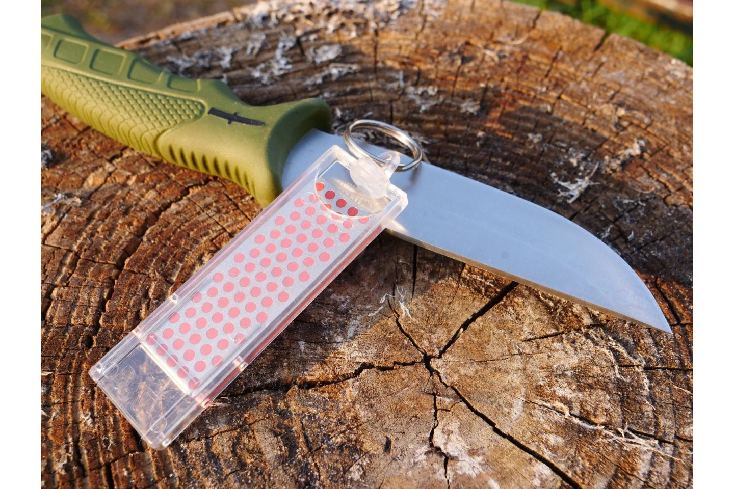 Le mini affuteur en diamant possède une pierre à aiguiser Diamond Whetstone™, qui se déplace largement avec vous.