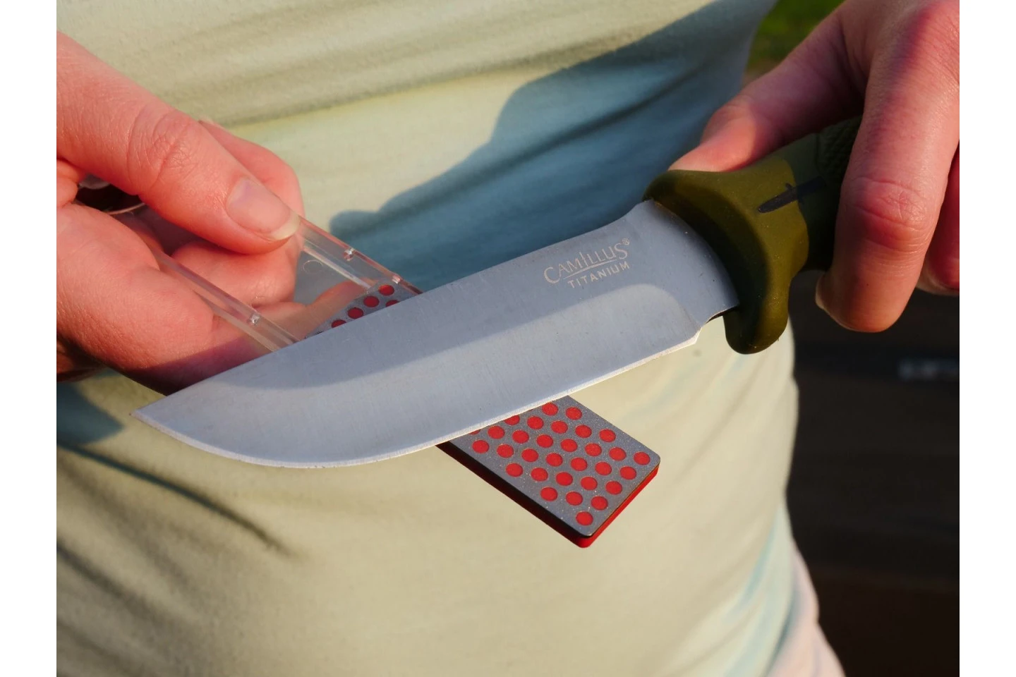 · La surface diamantée monocristalline de DMT® aiguise les couteaux plus rapidement que les pierres traditionnelles.