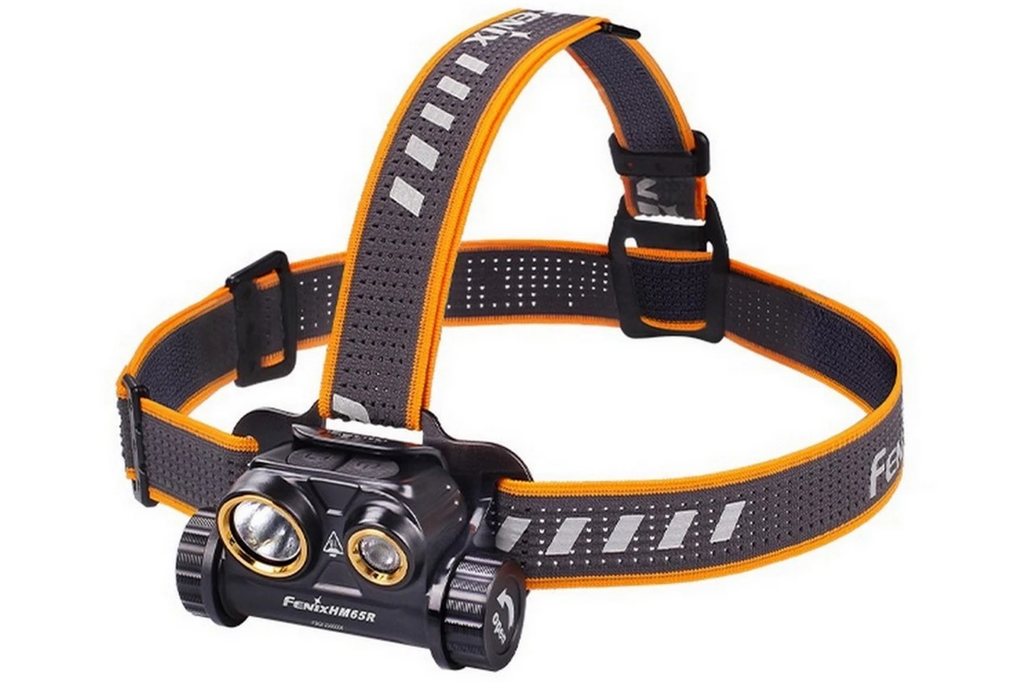 La Fenix HM65R est une lampe frontale avec une protection IP68 qui convient autant pour un éclairage proche que longue distance. Elle Utilise des LED blanches neutres, délivrant une puissance maximale de 1400 lumens, une portée de 163 mètres et une autonomie de 280 heures. Deux interrupteurs à commande séparée, faisceau étroit de 1000 lumens max, faisceau large de 400 lumens max.