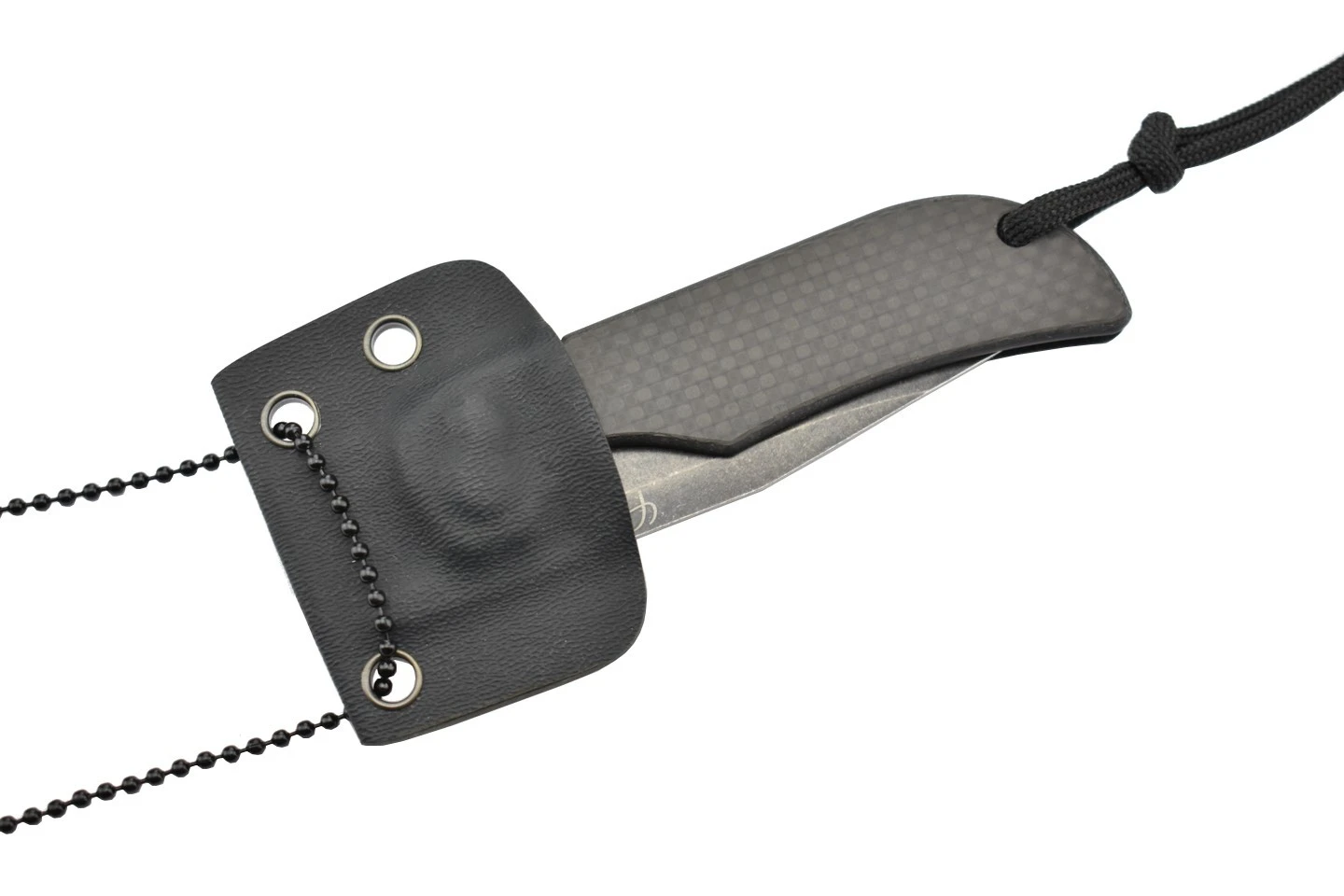 Le Bowie Pliant de Fred PERRIN, en collaboration avec Max Knives, est un couteau fait d’une lame en acier 440C très résistante et d’un manche en carbone noir qui permet, grâce à sa légèreté, de se faire oublier et donc d’avoir une bonne prise en main. La lame a été travaillée avec la finition Stone Wash pour être plus esthétique. Ce couteau est muni d’un étui en kydex avec une chaine afin de pouvoir le porter autour du cou.