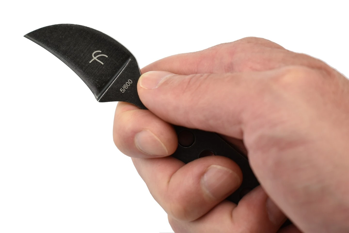 Fourni avec un étui en kydex. Lame Hawkbill. 5 Trous pour lanière en paracorde sur le manche.