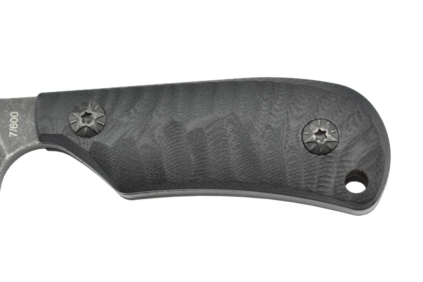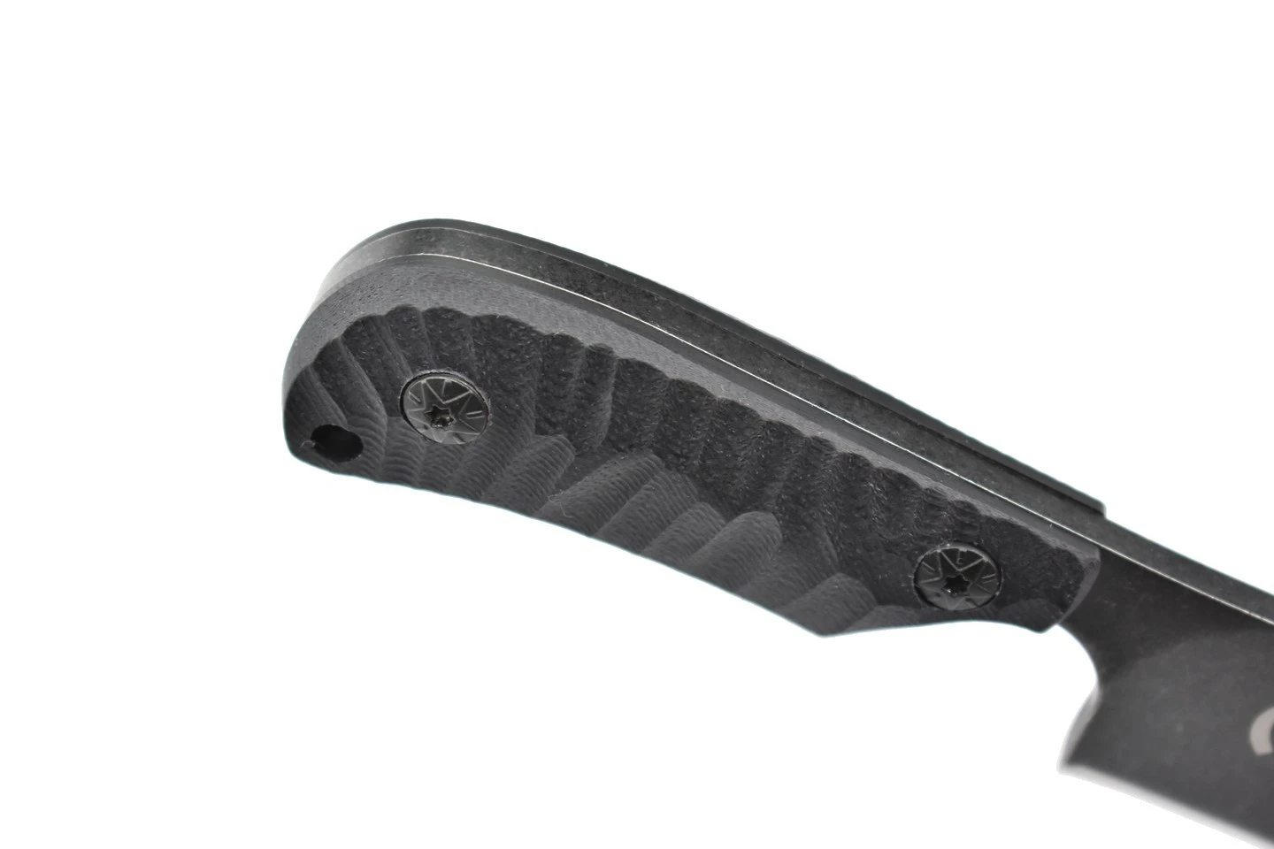 Lame Clip Point. Manche antidérapant en G10. Création de Fred Perrin pour Max Knives.