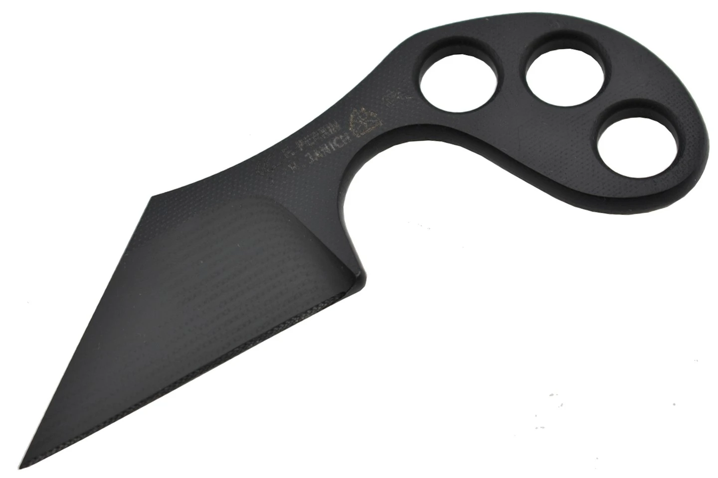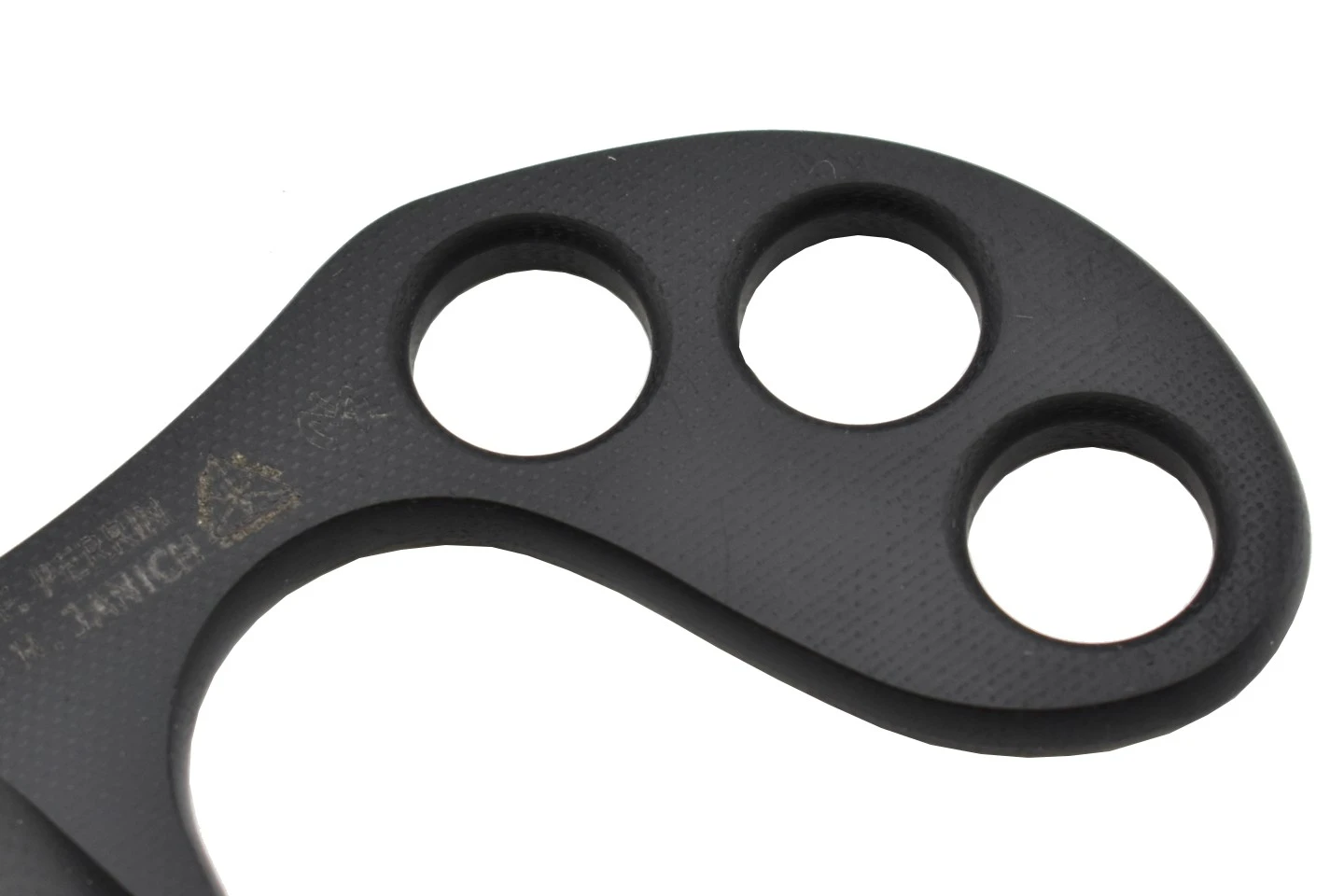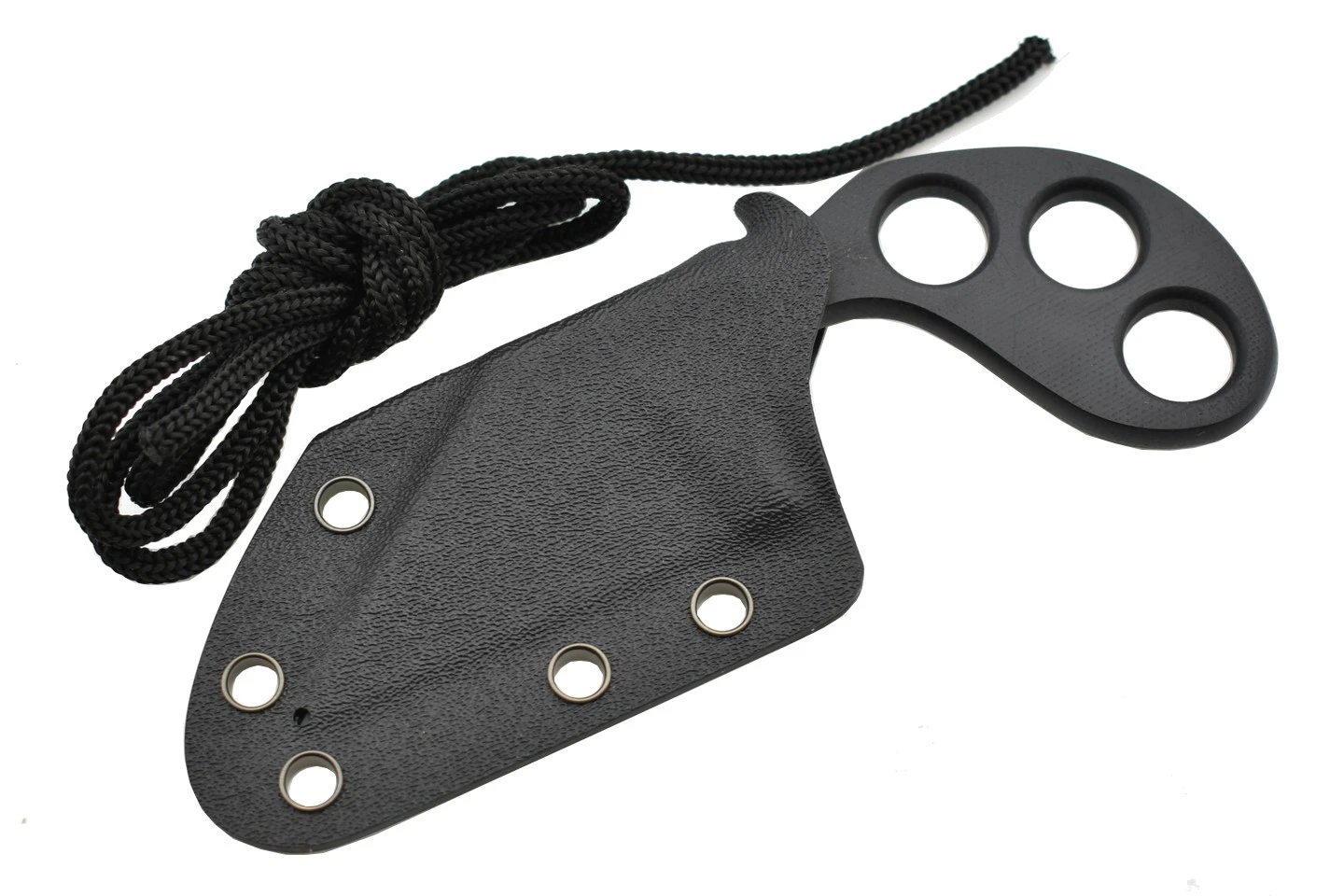 Couteau ultra ergonomique, monobloc, facile à transporter, peut être pris en main de différentes manières. Le manche comprend des trous pour ajouter une paracorde (incluse).