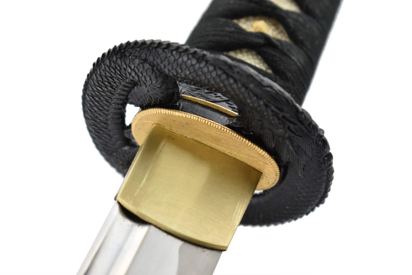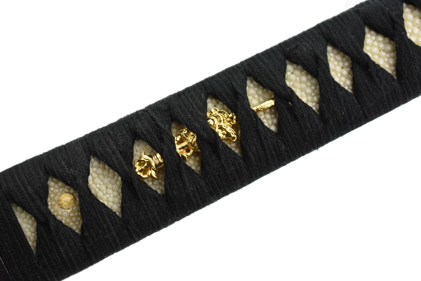 Le tressage de la tsuka est en coton japonais noir et les menukis sont plaqué or.