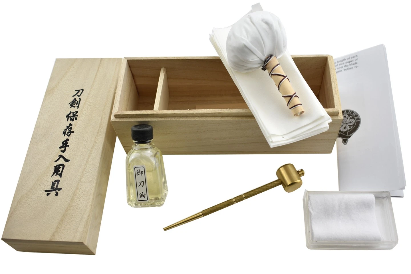 Le katana est Fourni avec une housse de protection en tissu, et un kit d’entretien traditionnel.