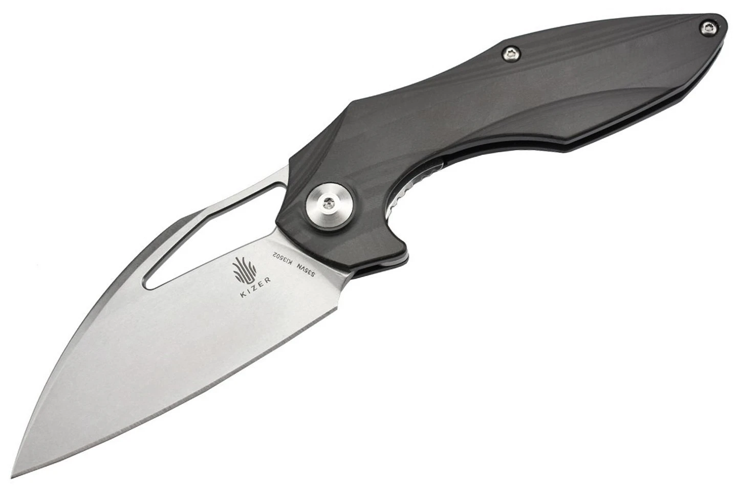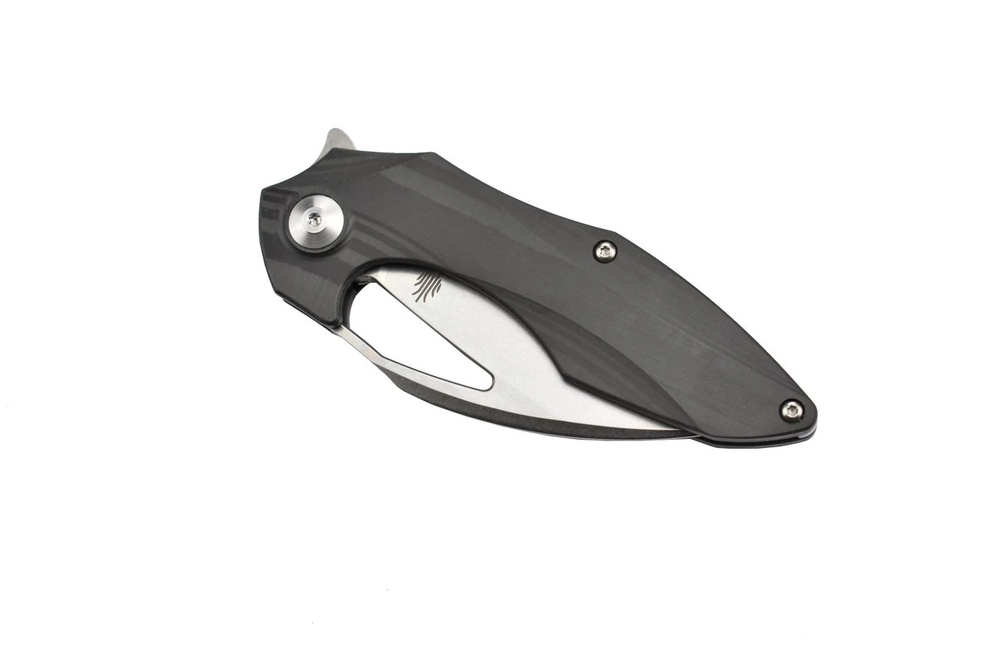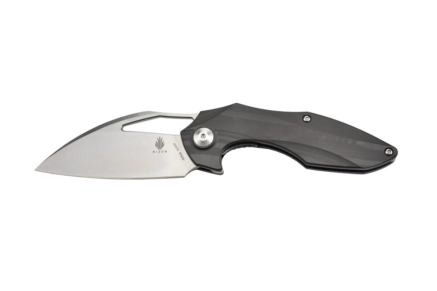 Couteau pliant ergonomique et élégant, une création originale du designer Elijah Isham, comprenant une lame en acier inoxydable S35VN et un manche en fibre de carbone. Ouverture de la lame par flipper.