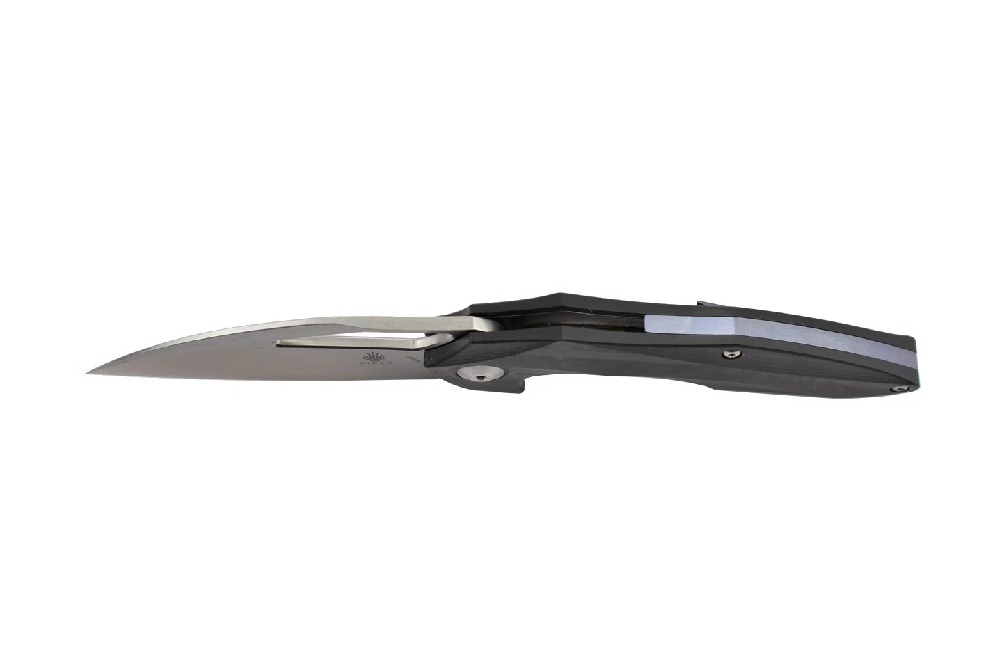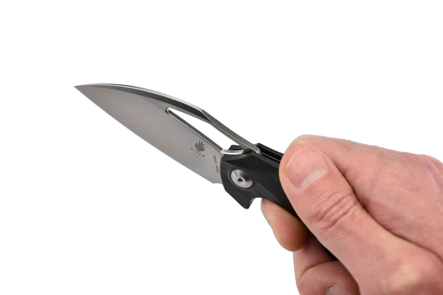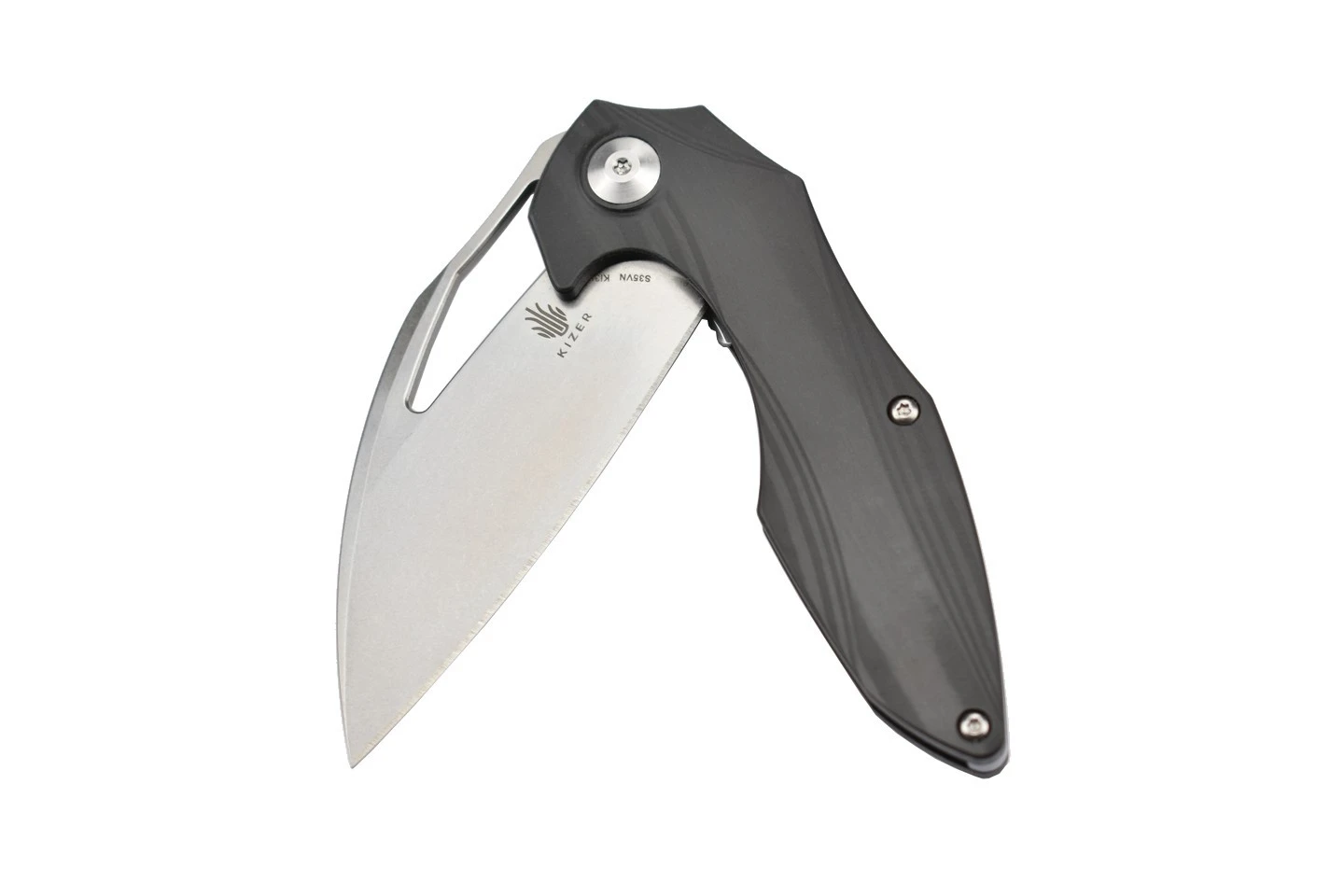 Couteau pliant ergonomique et élégant, une création originale du designer Elijah Isham, comprenant une lame en acier inoxydable S35VN et un manche en fibre de carbone. Ouverture de la lame par flipper.