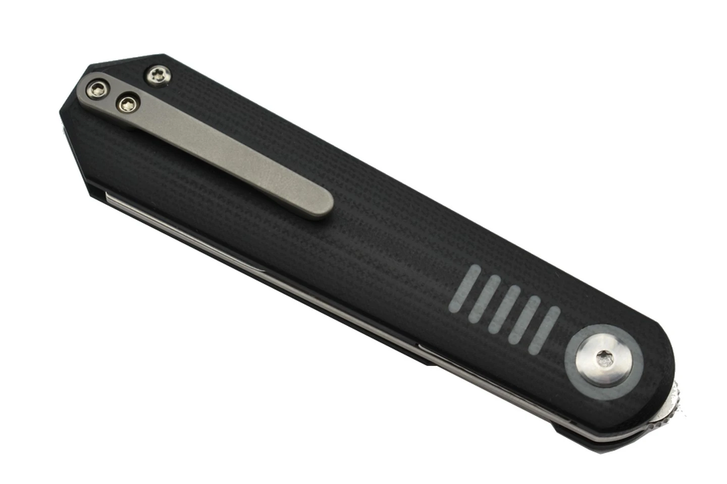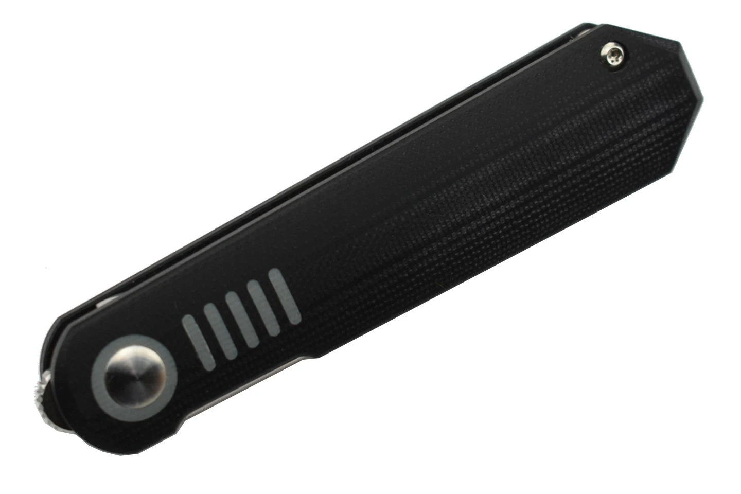 Manche en G10 noir et gris, intercalaires en acier