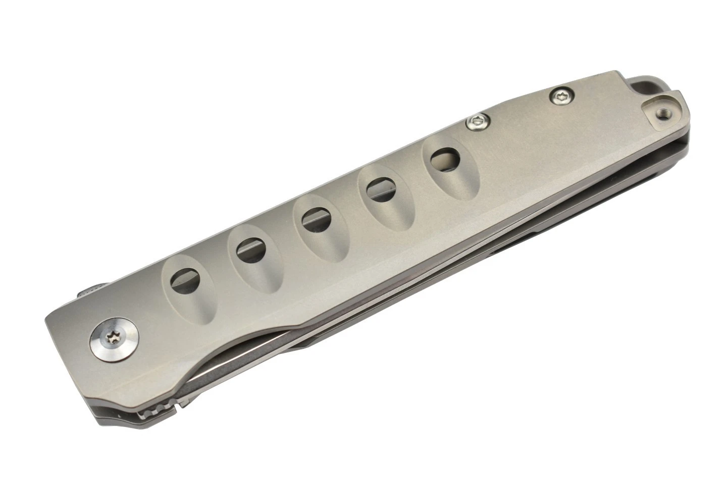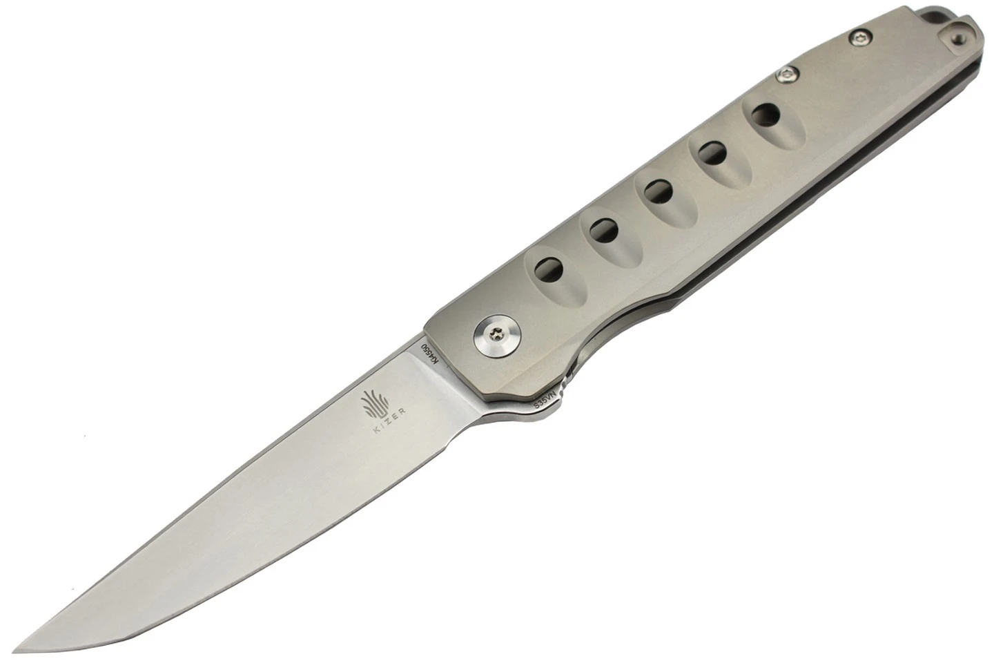 Le Kizer “Noble” a l’apparence d’un katana de poche avec sa forme de lame tanto japonaise et son motif de fraisage sur le manche. Il procure une excellente prise main, une forme idéale pour être glissé dans la poche, et il est facile à manipuler ouvert et fermé. Le clip de poche en titane est réversible et il y a un trou de lanière de bonne taille pour aider à tirer le couteau de votre poche.