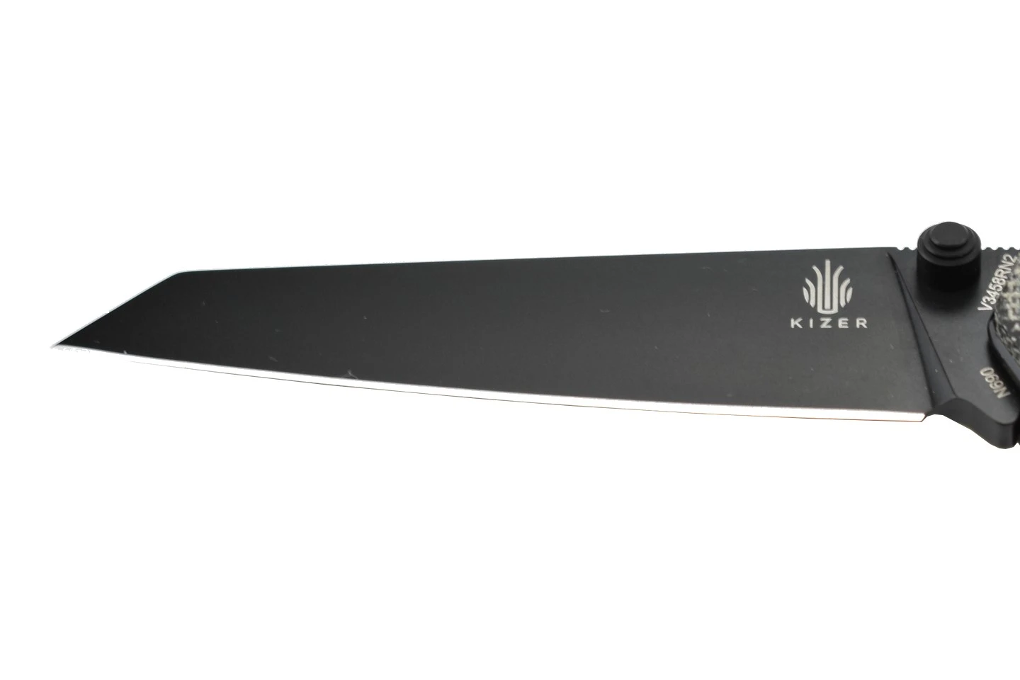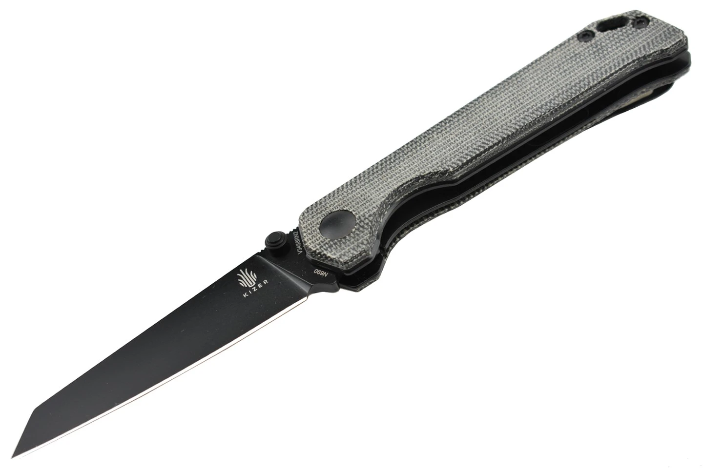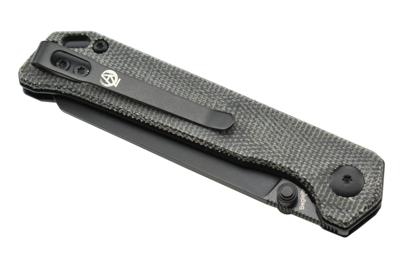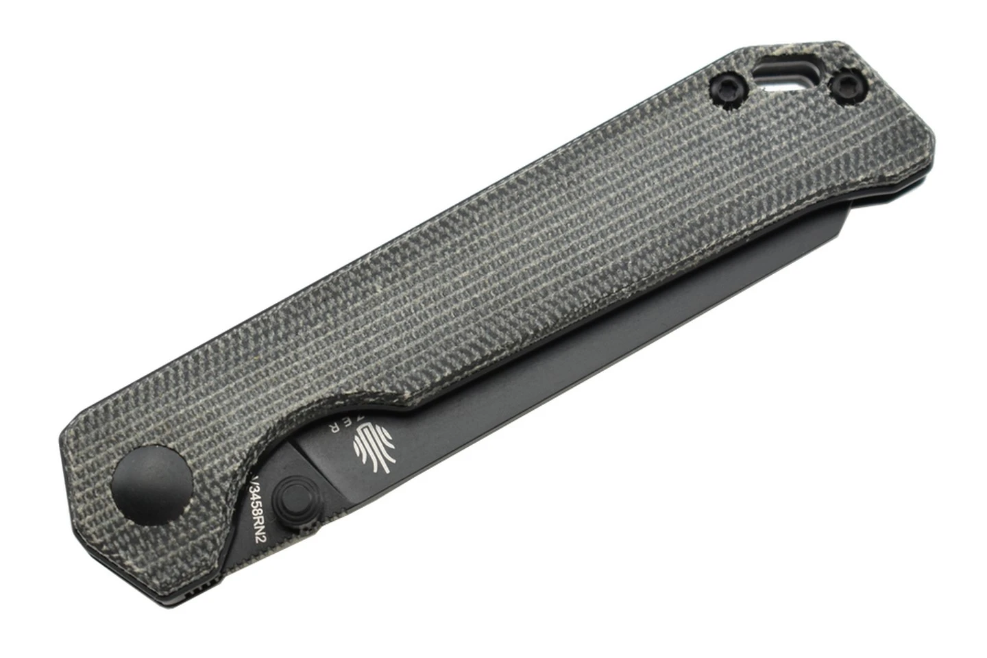 Manche en micarta noir/gris, intercalaires en acier inoxydable noir