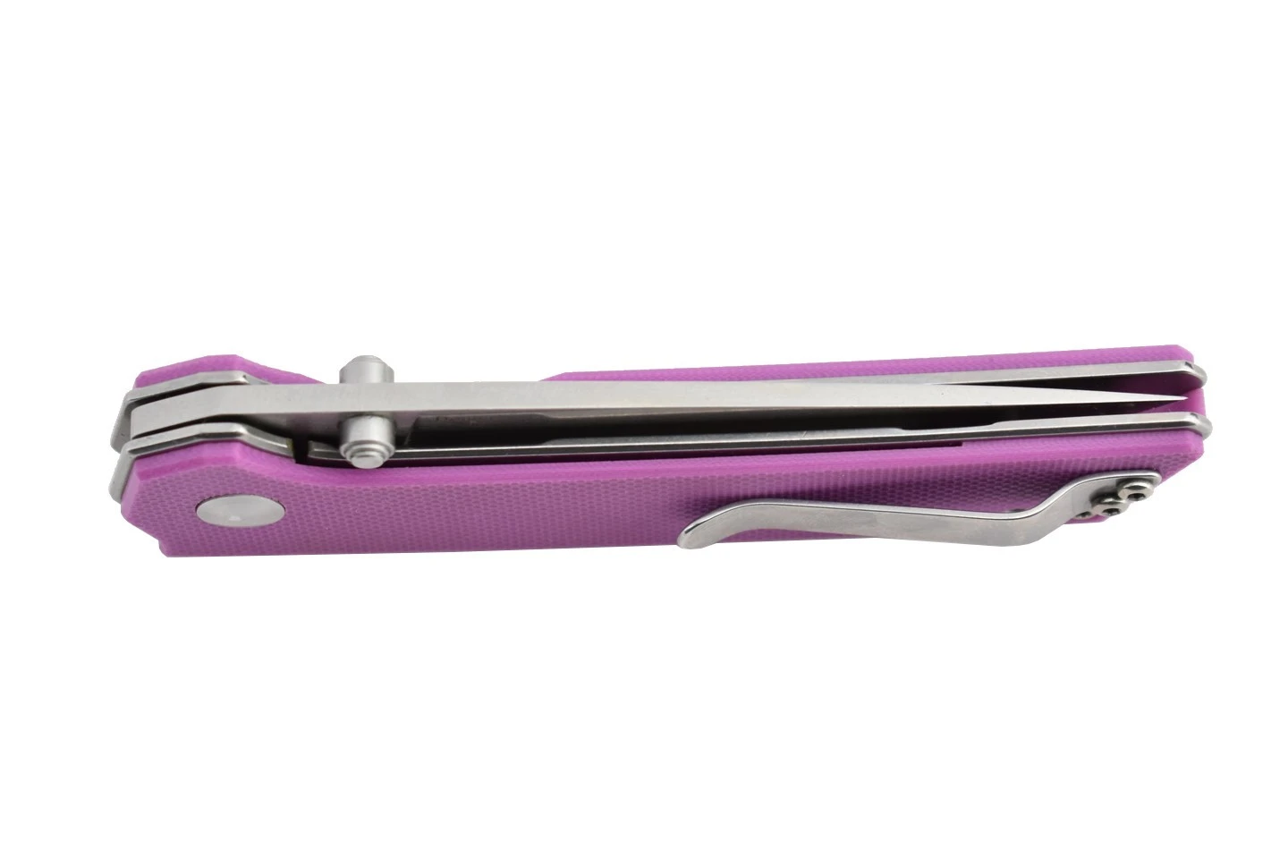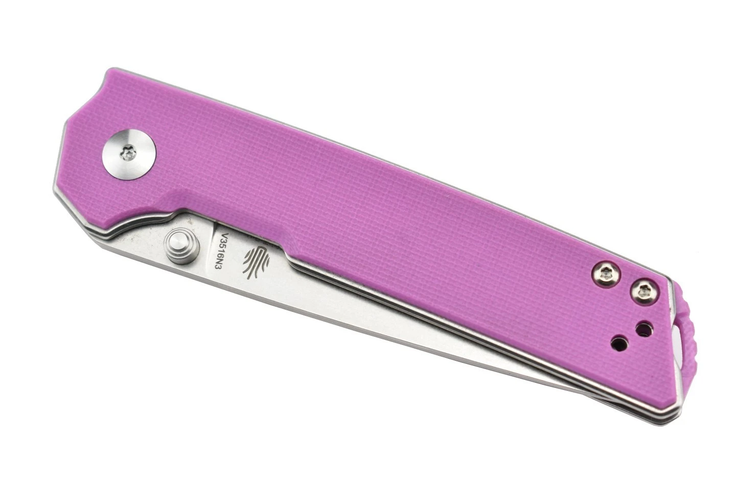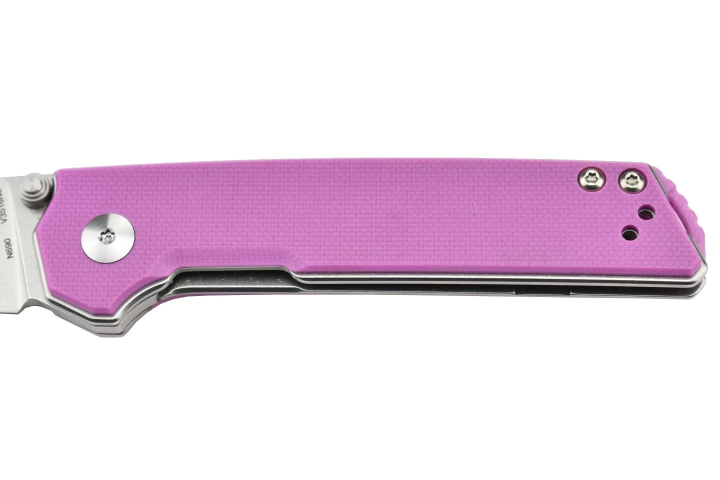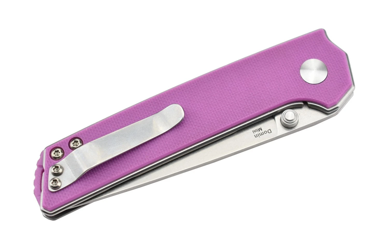 Ce modèle Domin Mini est conçu avec une lame en acier à la finition stonewash et un manche en G-10 rose. Son design simple et minimaliste est idéal pour une utilisation au quotidien. Il comprend une lame en acier inoxydable Bohler N690 et un manche en G-10 avec des intercalaires en acier. Il est équipé d’un clip de poche réversible et de thumb stud pour une ouverture liner lock à une main.