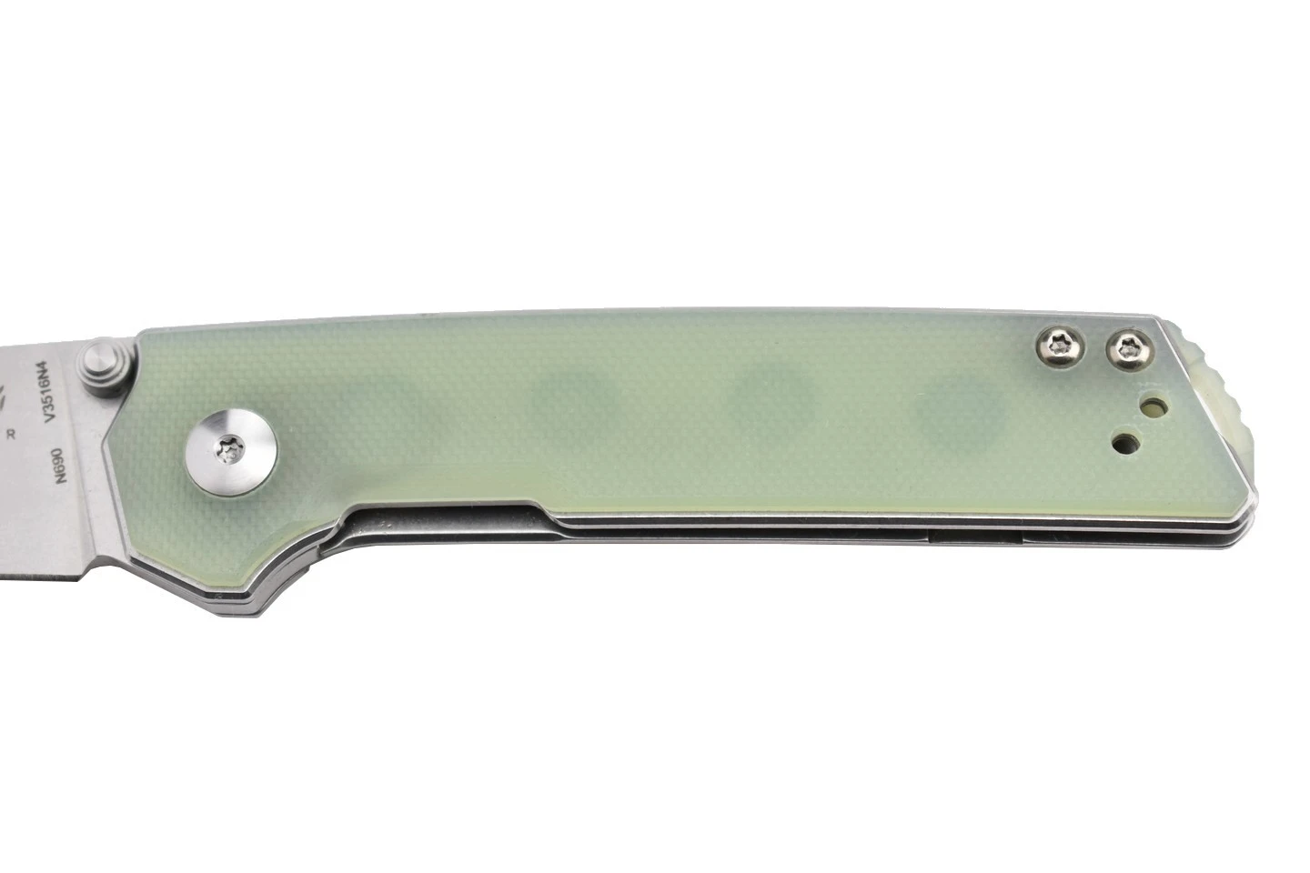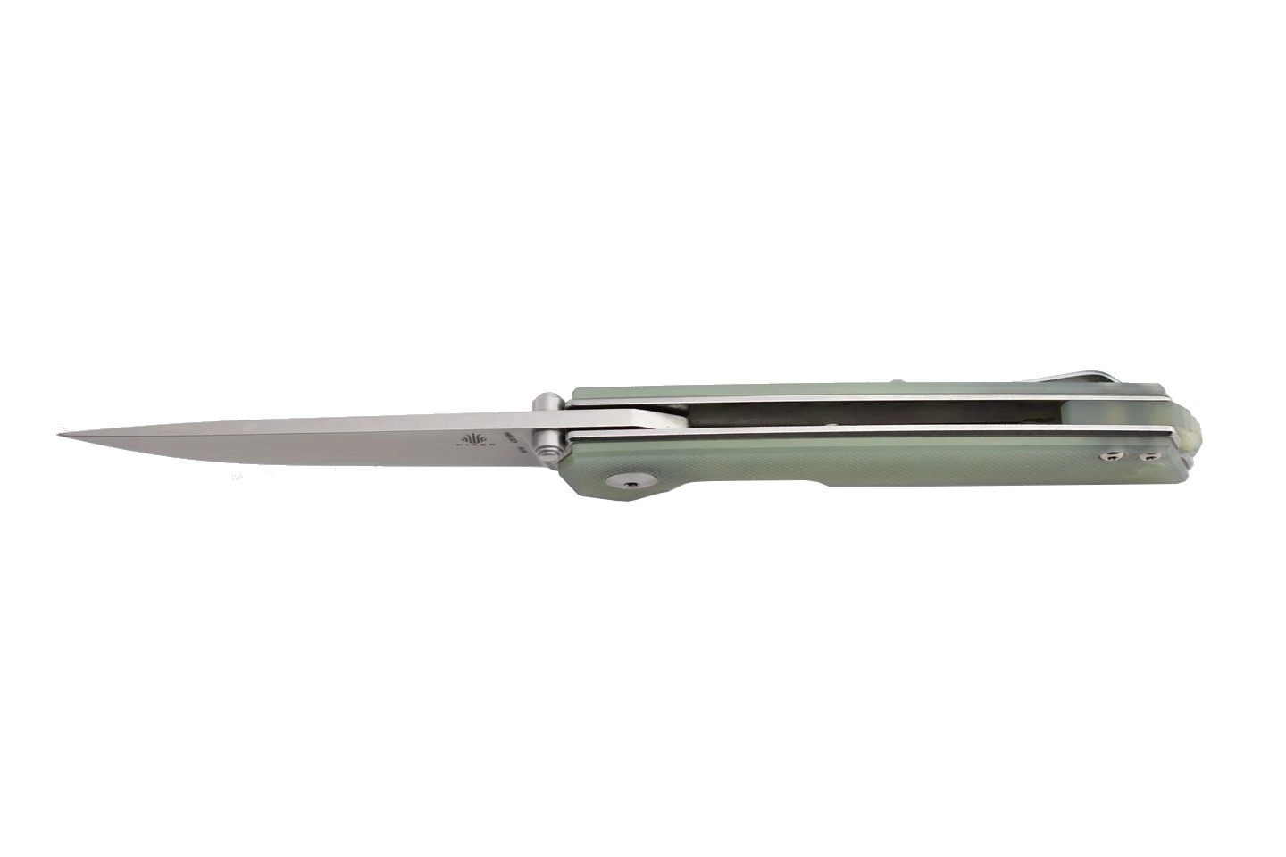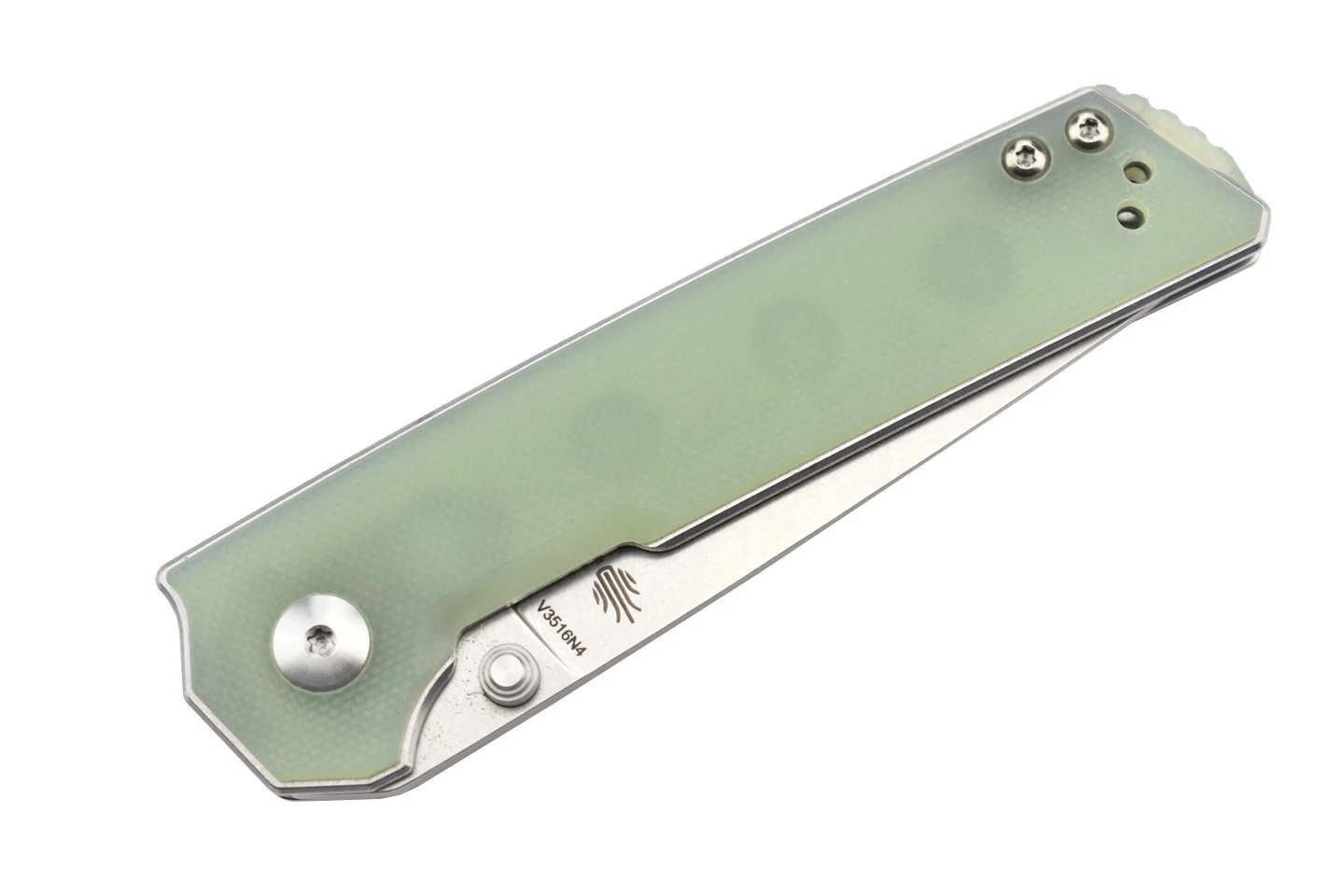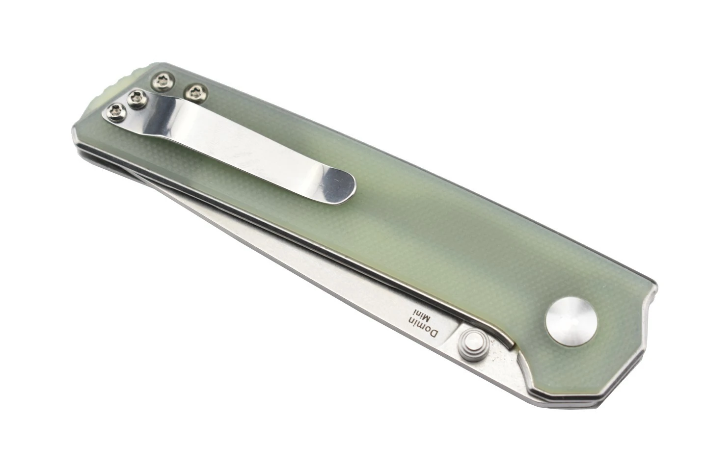 Ce modèle Domin Mini est conçu avec une lame en acier à la finition stonewash et un manche en G-10 translucide. Son design simple et minimaliste est idéal pour une utilisation au quotidien. Il comprend une lame en acier inoxydable Bohler N690 et un manche en G-10 avec des intercalaires en acier. Il est équipé d’un clip de poche réversible et de thumb stud pour une ouverture liner lock à une main.