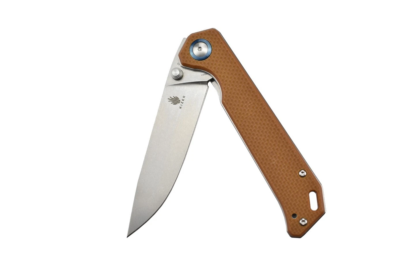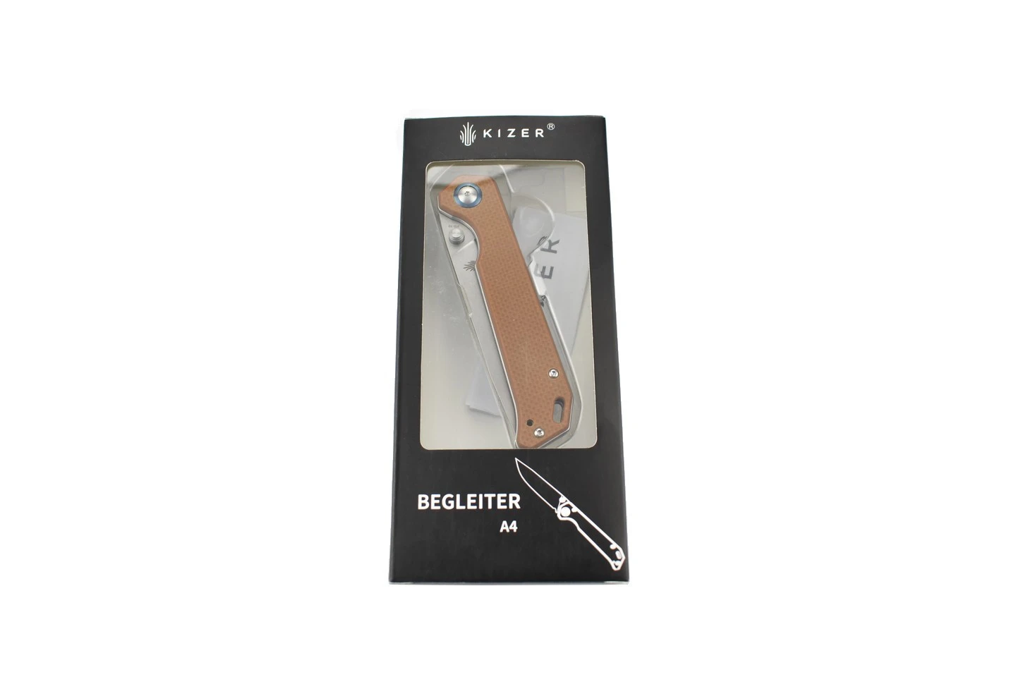 Le Vanguard V4458A4 Begleiter de Kizer est un couteau de transport quotidien mince et tactique qui apporte beaucoup plus que son prix ne le suggère. Il comporte une lame VG10 avec une forme en pointe et une finition délavée. Les rondelles en bronze permettent une ouverture en douceur de la lame, comme avec tous les couteaux Kizer, et l’action est rapide, vive et autoritaire.