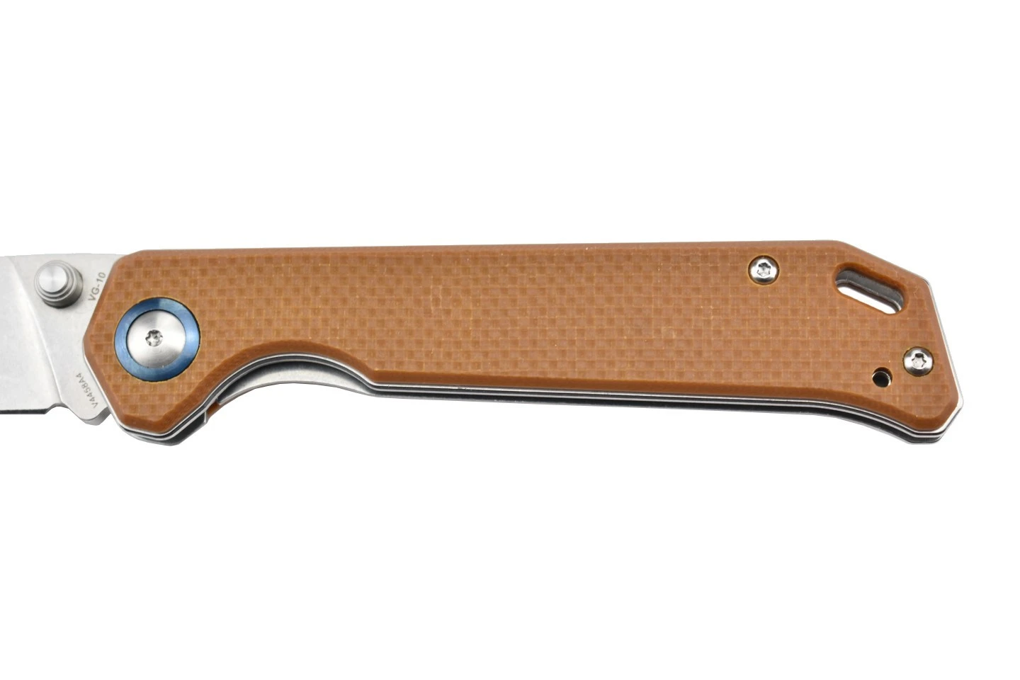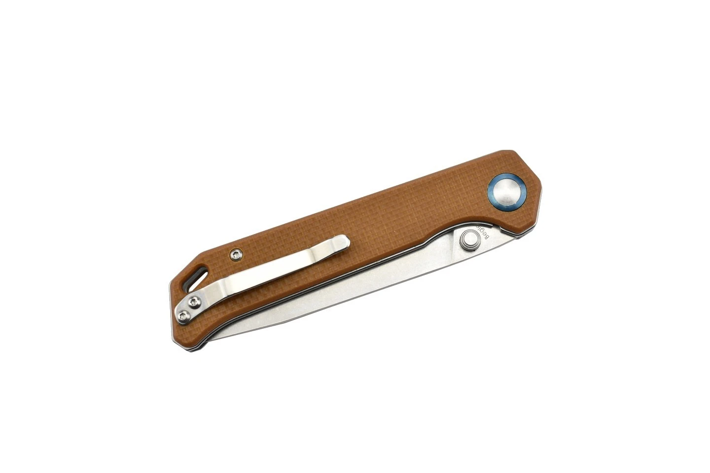 Le double thumb stud est pratique et il y a une grande fente pour un cordon qui logera facilement une paracorde. Le manche texturé en G10 a un profil idéal pour le transport et il est extrêmement ergonomique. Doté d’un clip-ceinture réversible et d’intercalaires en acier inoxydable, il deviendra vite un outil du quotidien indispensable.