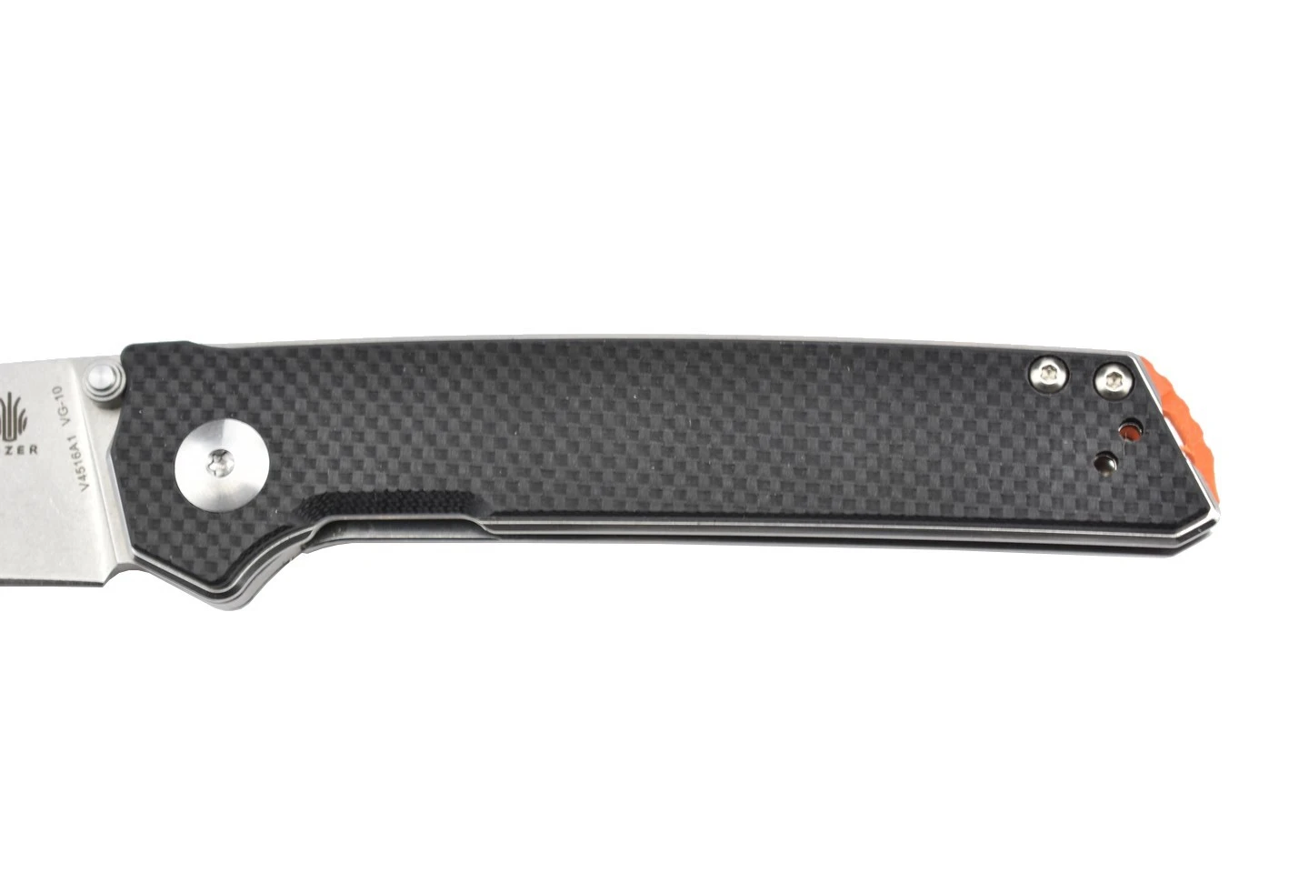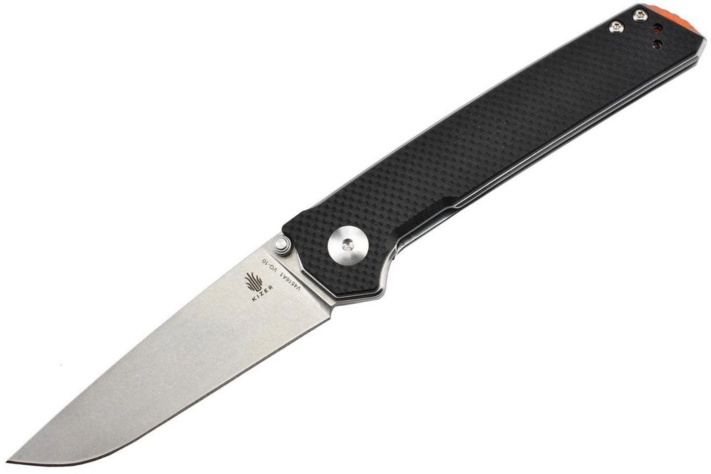 Le couteau Vanguard V4516A1 Domin de Kizer est idéal pour le transport quotidien, un outil mince et tactique. La lame drop point est fabriquée en acier inoxydable VG10 avec deux thumb stud et une finition délavée. Le manche noir texturée G10 a un profil mince pour un transport facile, il est extrêmement ergonomique et possède une fente pour intégrer une lanière.