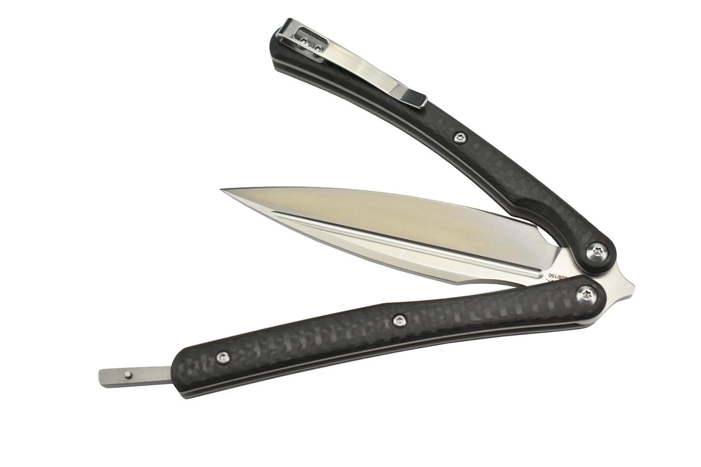 Montée sur 4 roulements à billes, platine et verrou en Titane, manche en Fibre de Carbone.