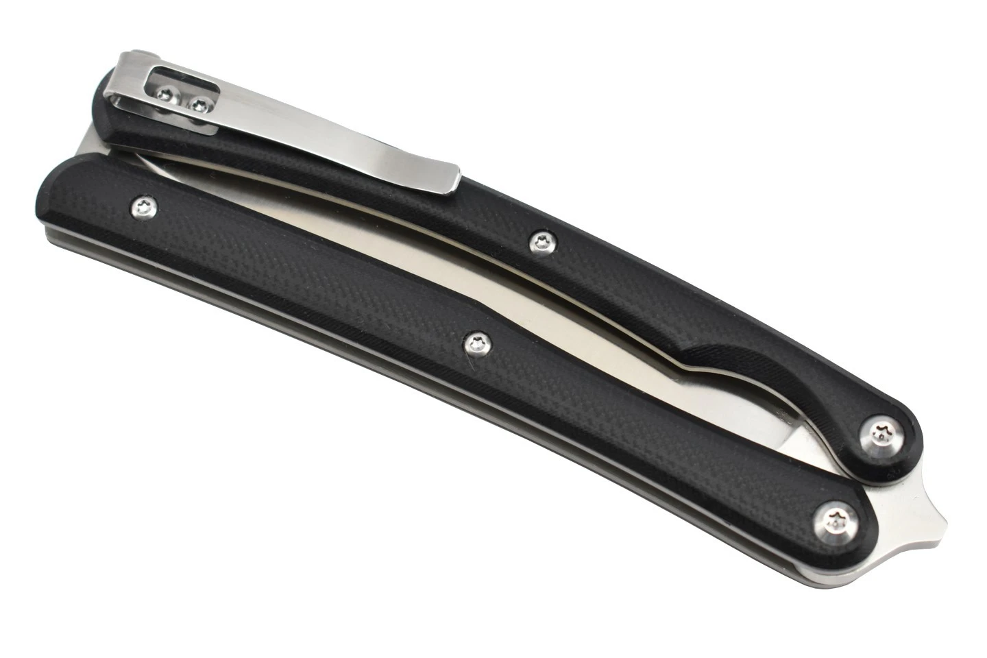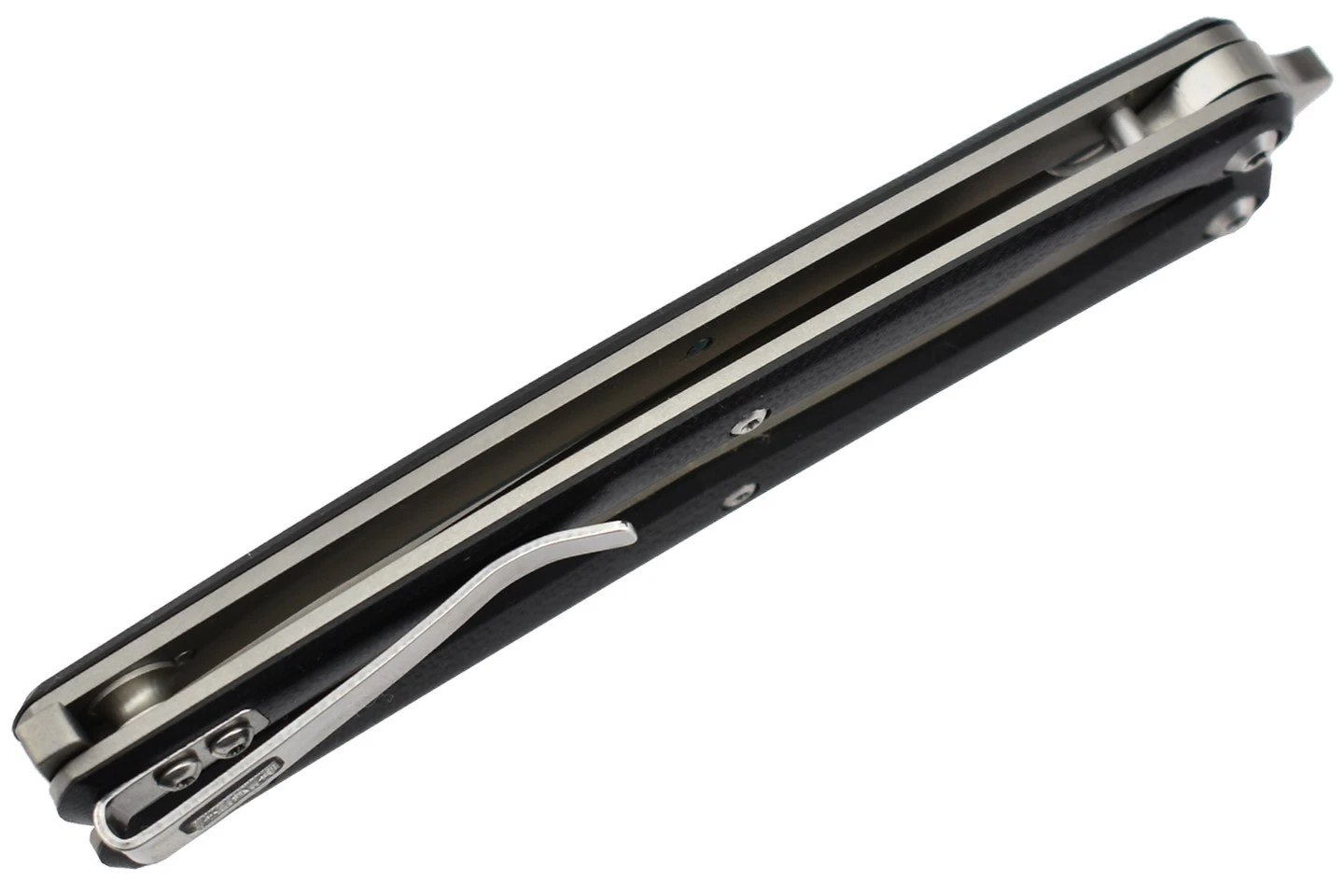 Montée sur 4 roulements à billes, platine et verrou en Titane, manche en G10.