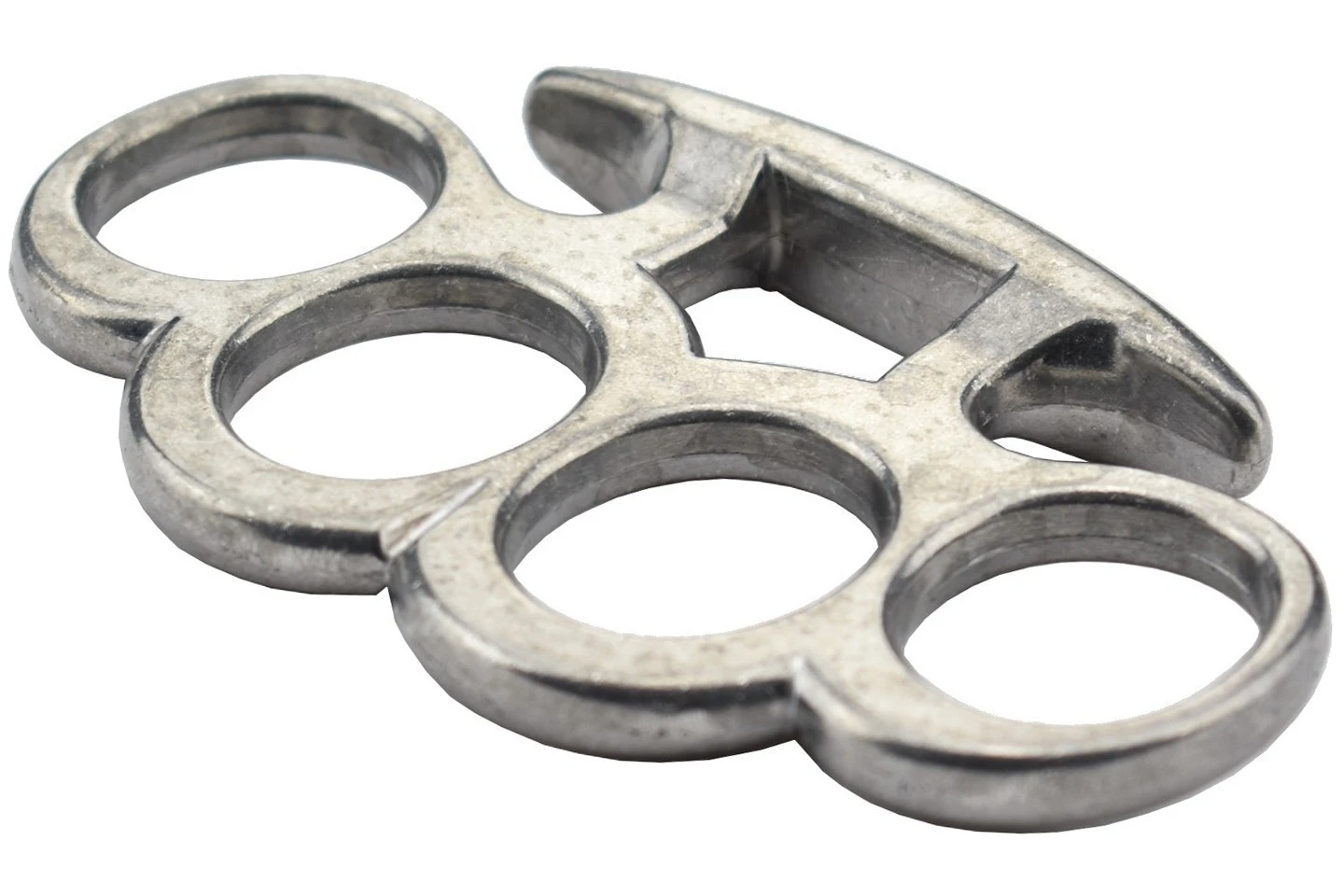 Ce coup-de-poing américain est constitué d’une pièce d’aluminium dans laquelle on passe les doigts, pour obtenir un impact plus efficace qu’à poing nu, et réduire les risques de s’endommager la main en frappant.