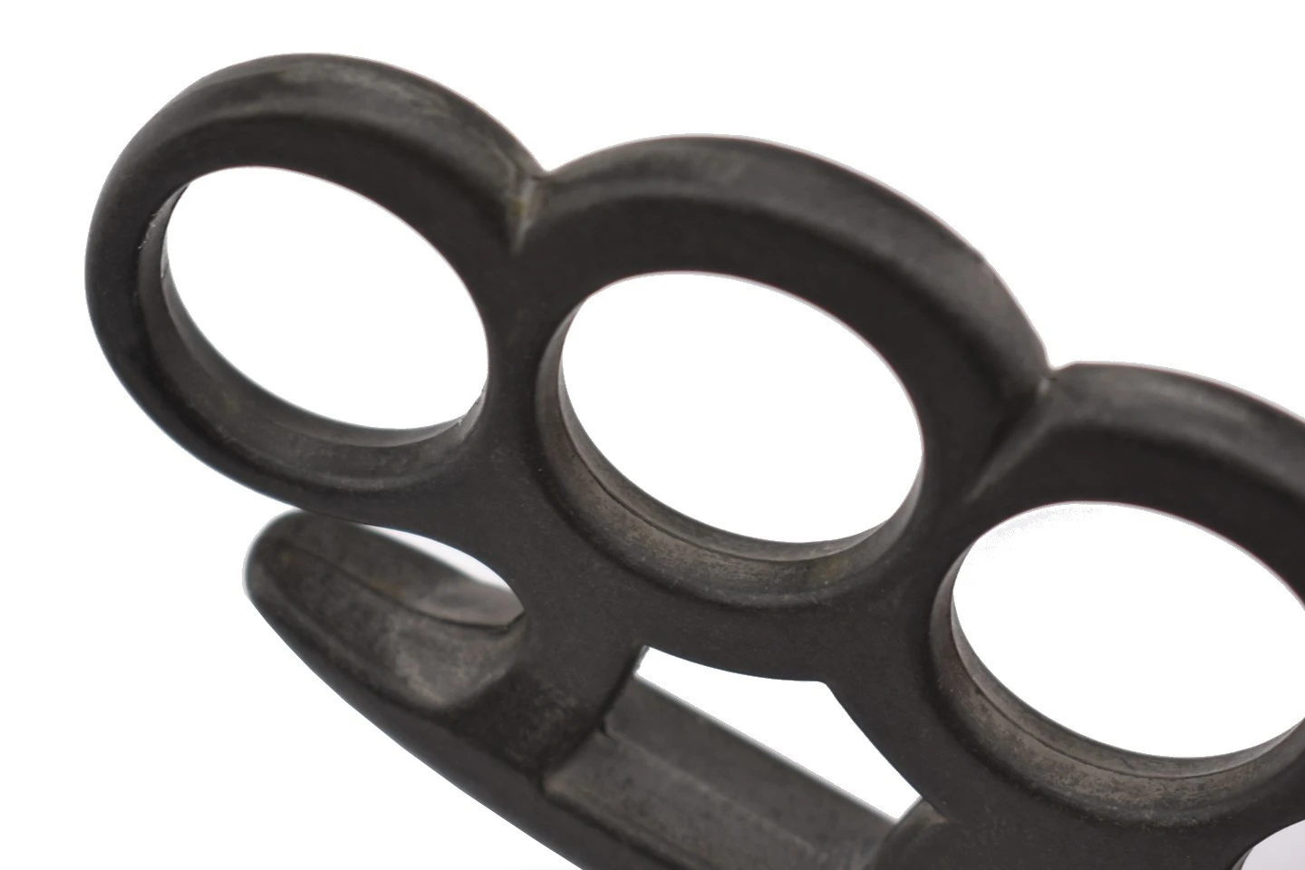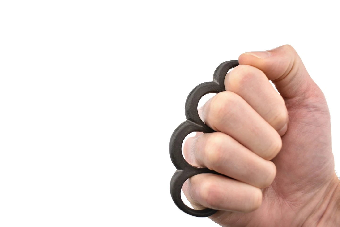 Ce coup-de-poing américain est constitué d’une pièce d’aluminium dans laquelle on passe les doigts, pour obtenir un impact plus efficace qu’à poing nu, et réduire les risques de s’endommager la main en frappant.