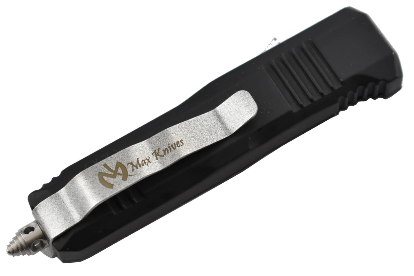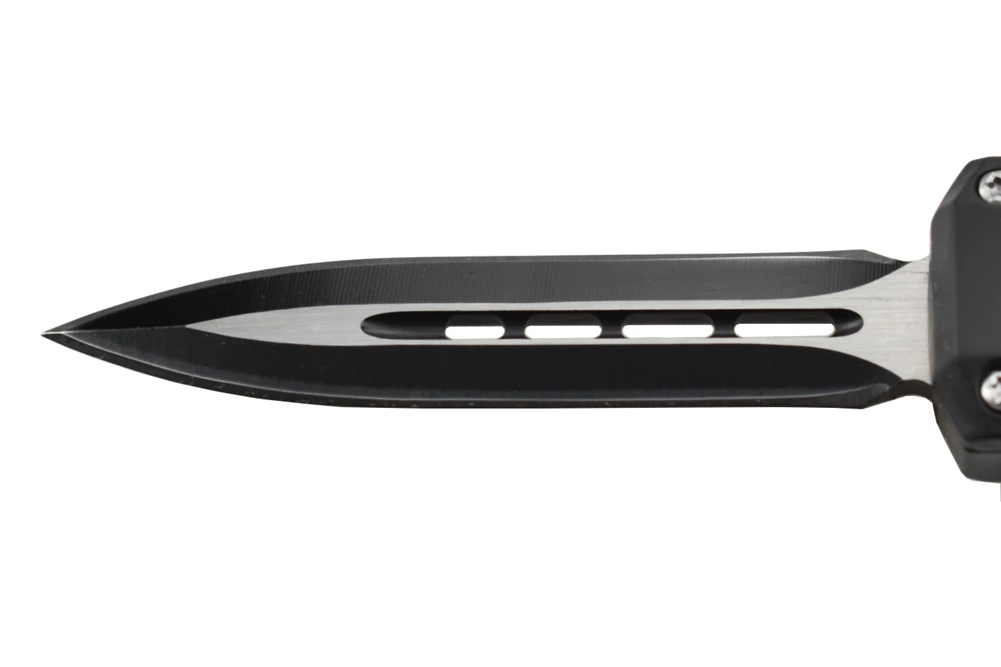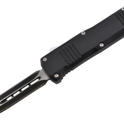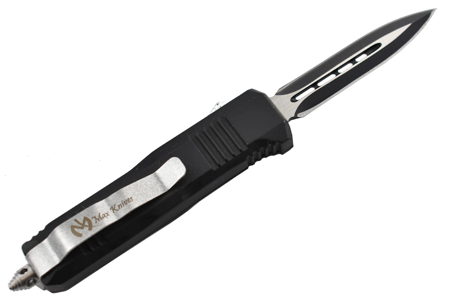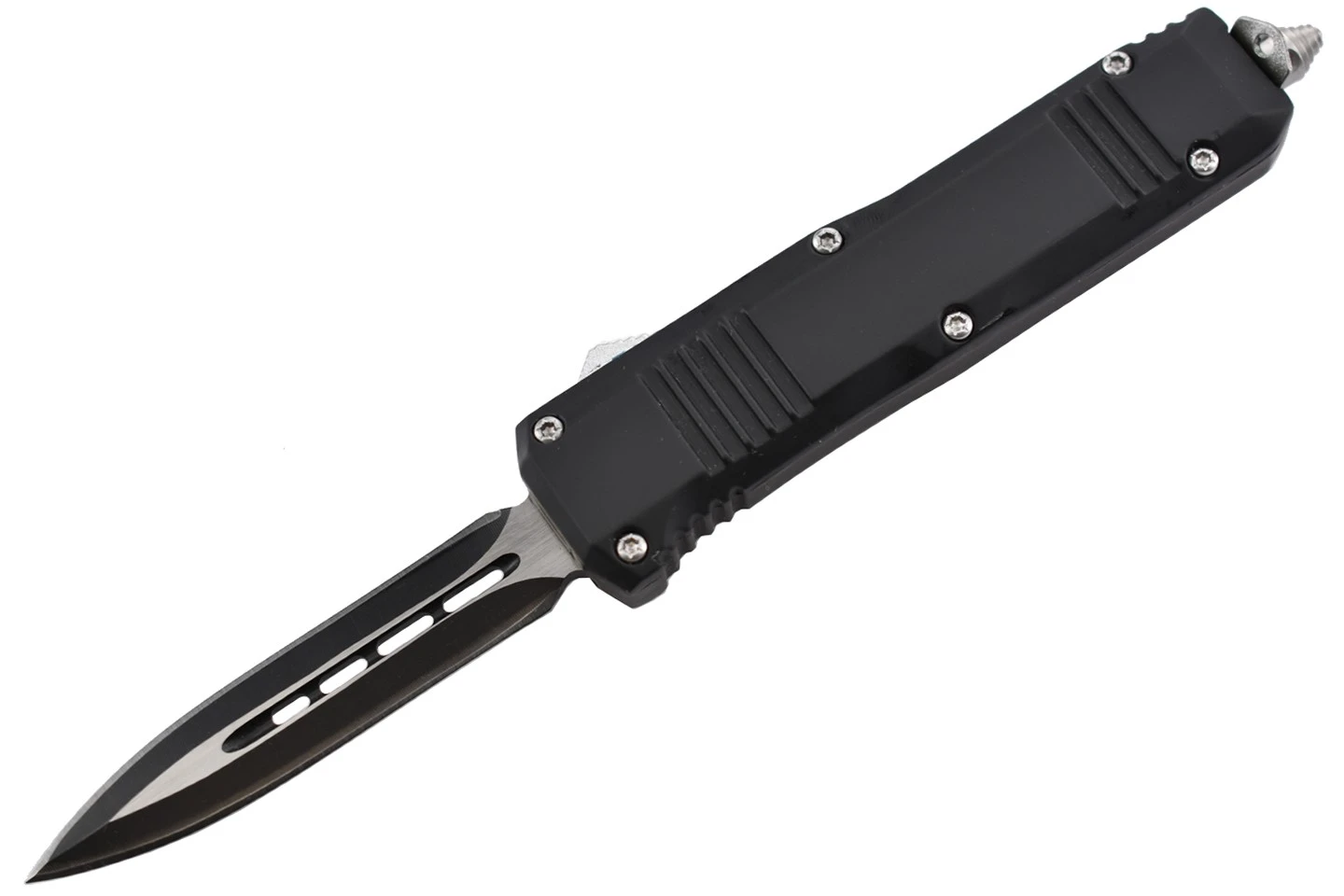 Couteau automatique, petit format, lame à double tranchant, double action.