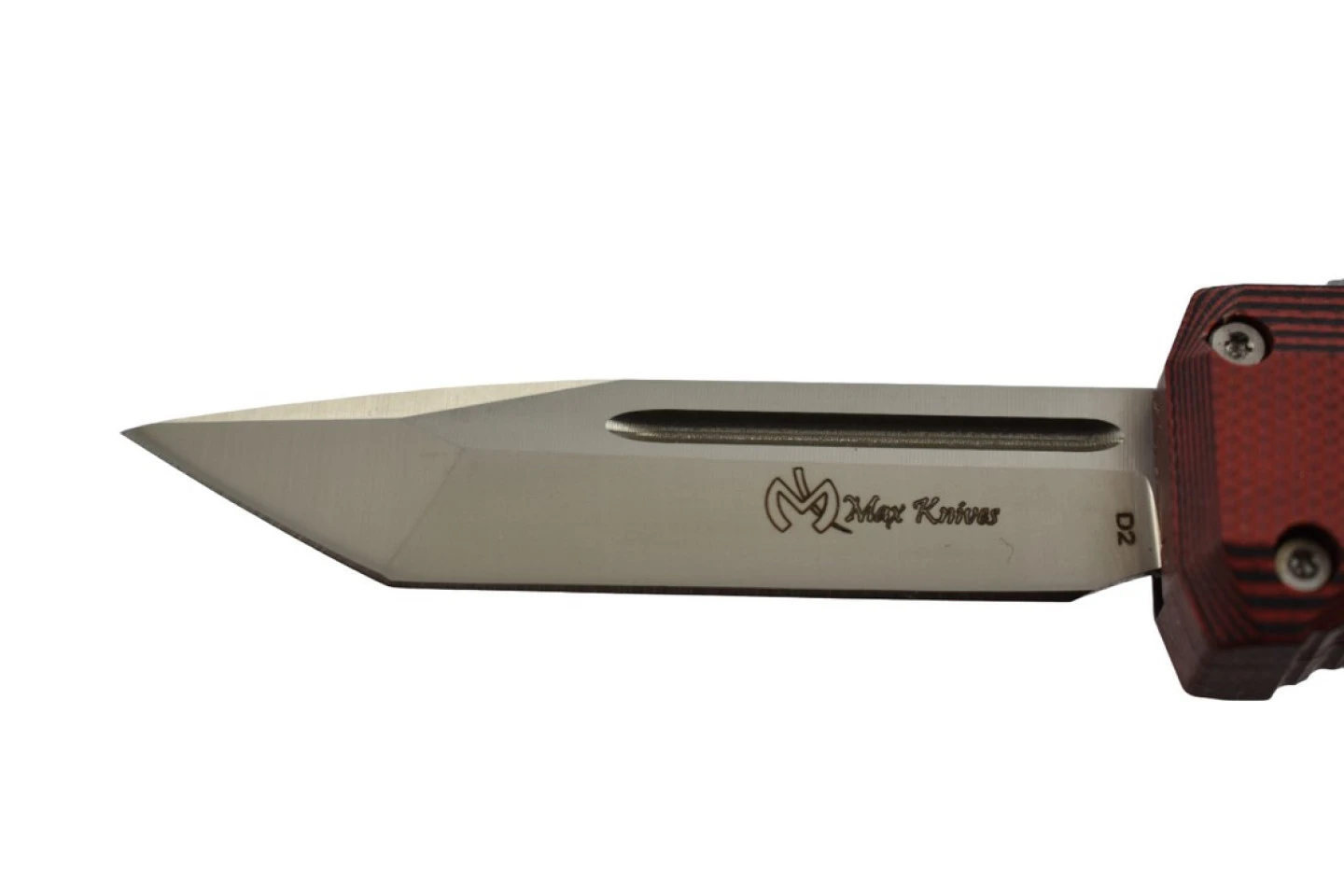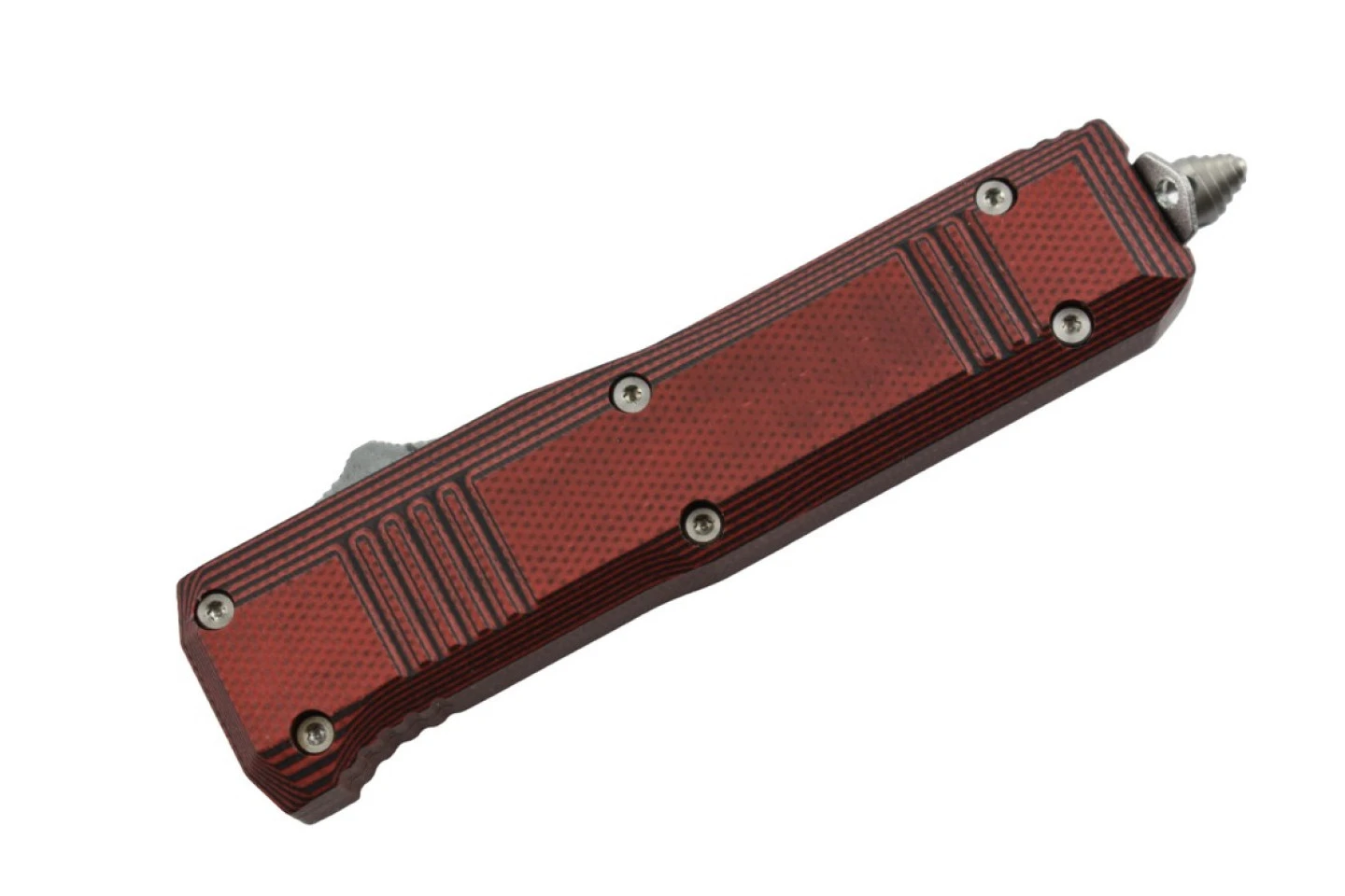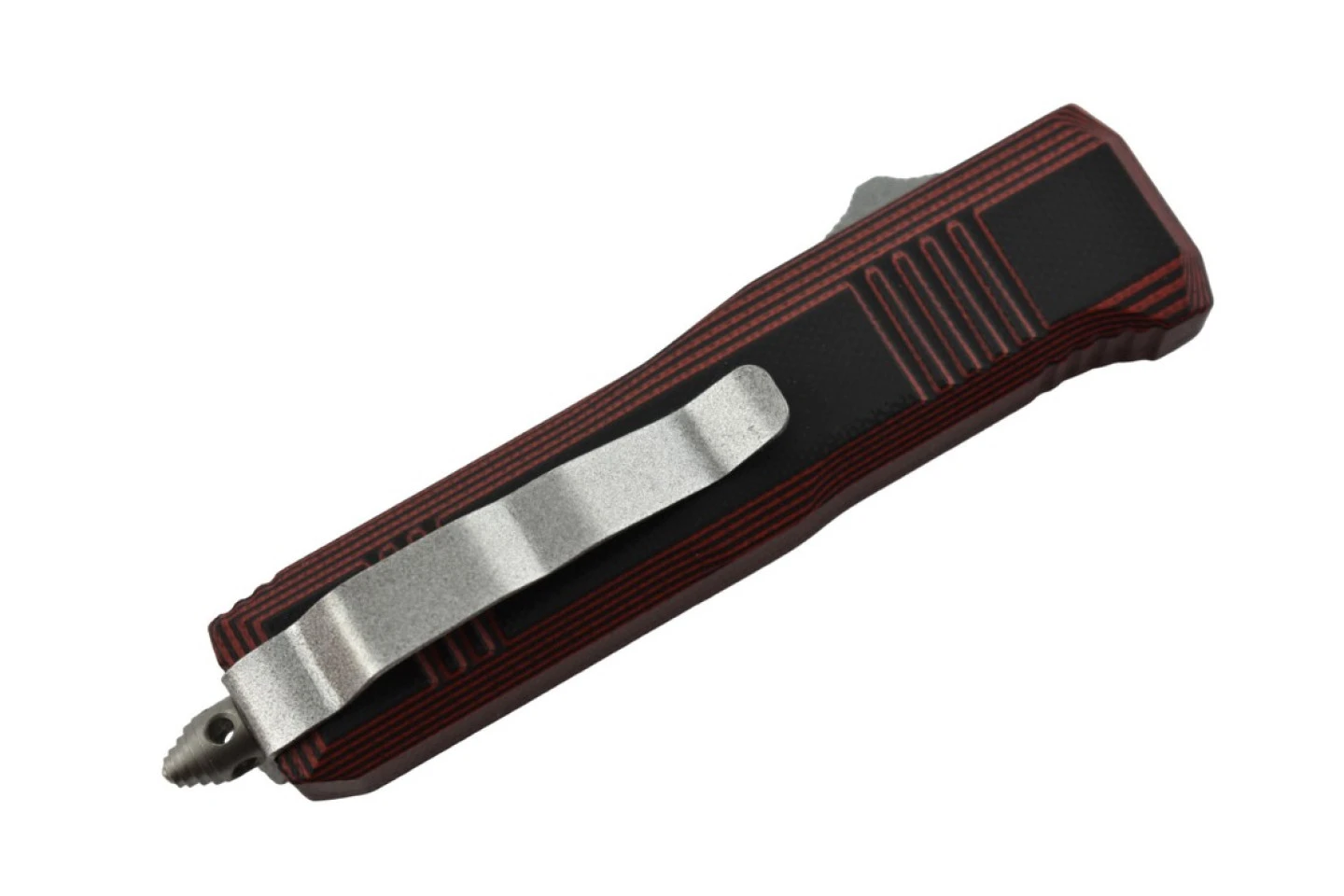 Couteau automatique rouge, petit format, lame tanto.
