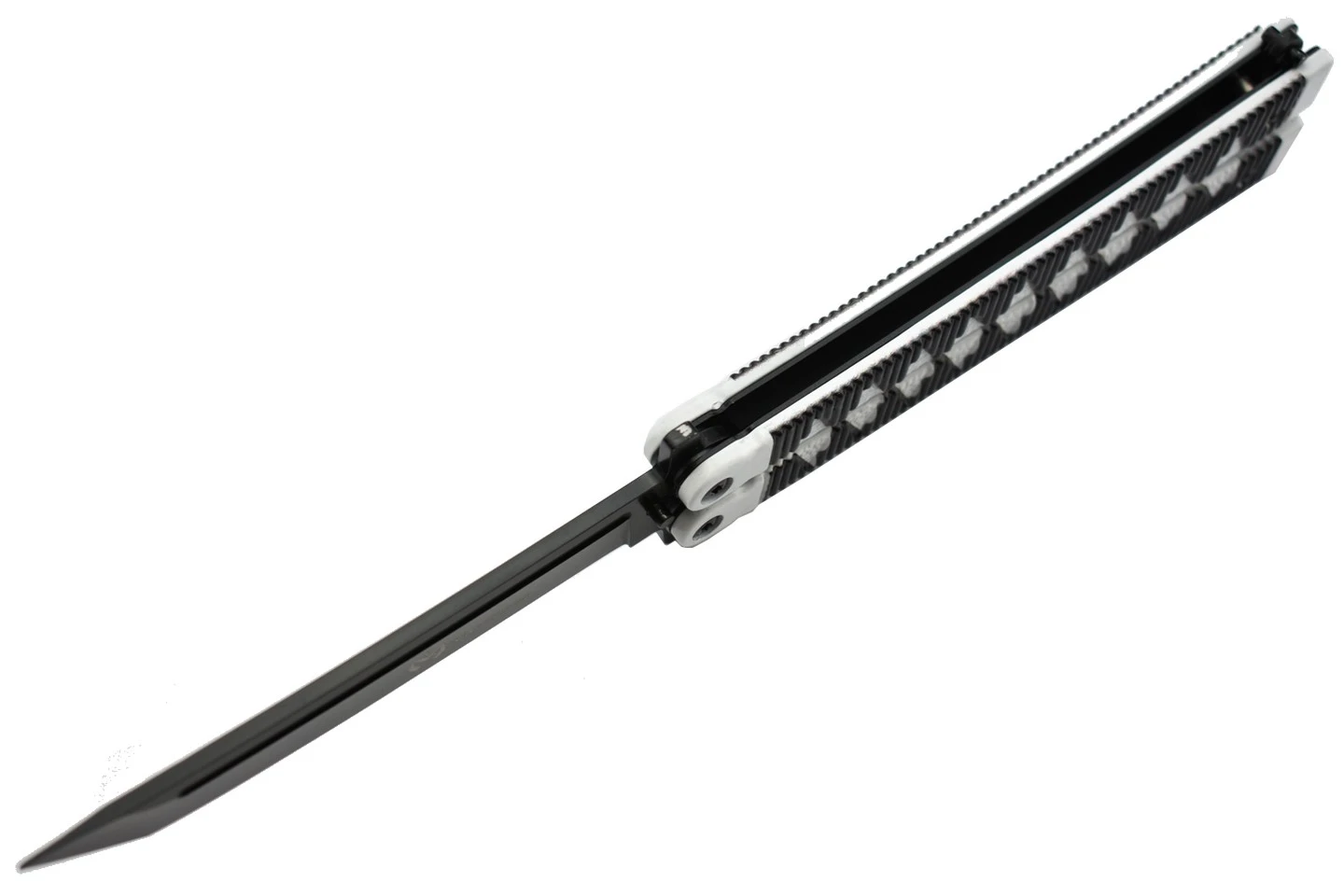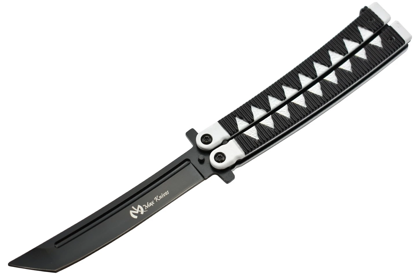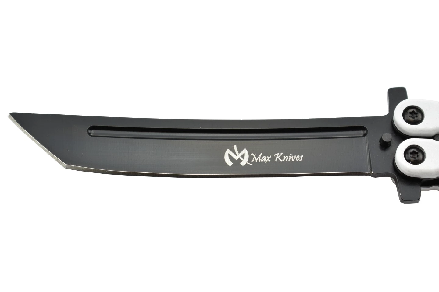 Maxknives P46B Couteau Papillon Lame Acier 3CR13 Manche Aluminium Blanc Et Noir