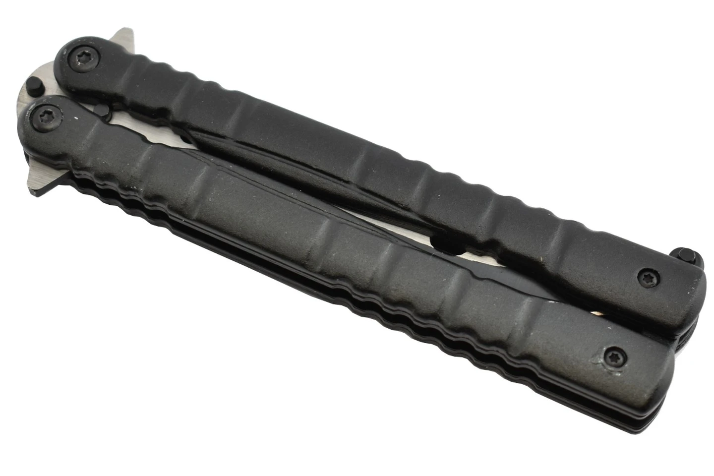 Maxknives P49 Couteau Papillon Lame Acier 3CR13 Manche Aluminium Anodisé Noir