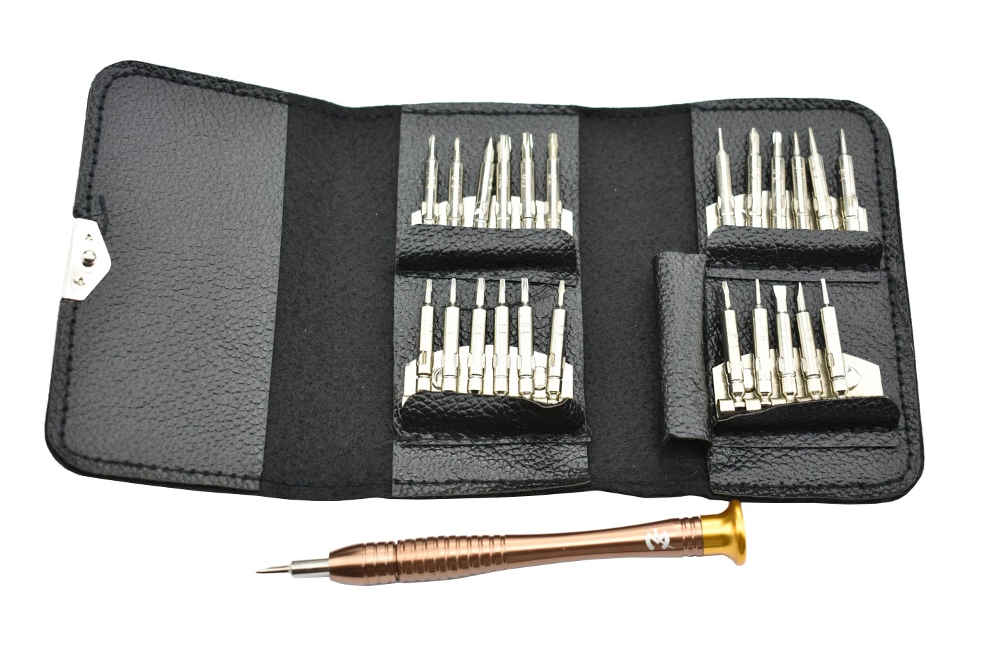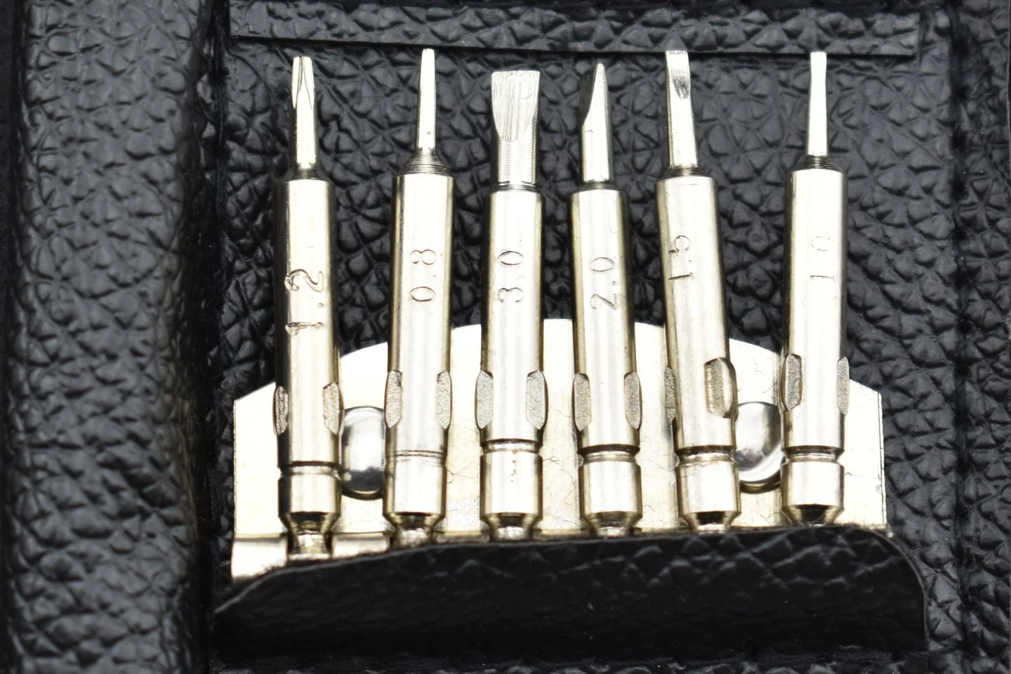 Cet ensemble de microvissage de précision comprend 24 embouts interchangeables, parmi lesquels différents formats de tournevis, cruciforme, plat, torx, etc.