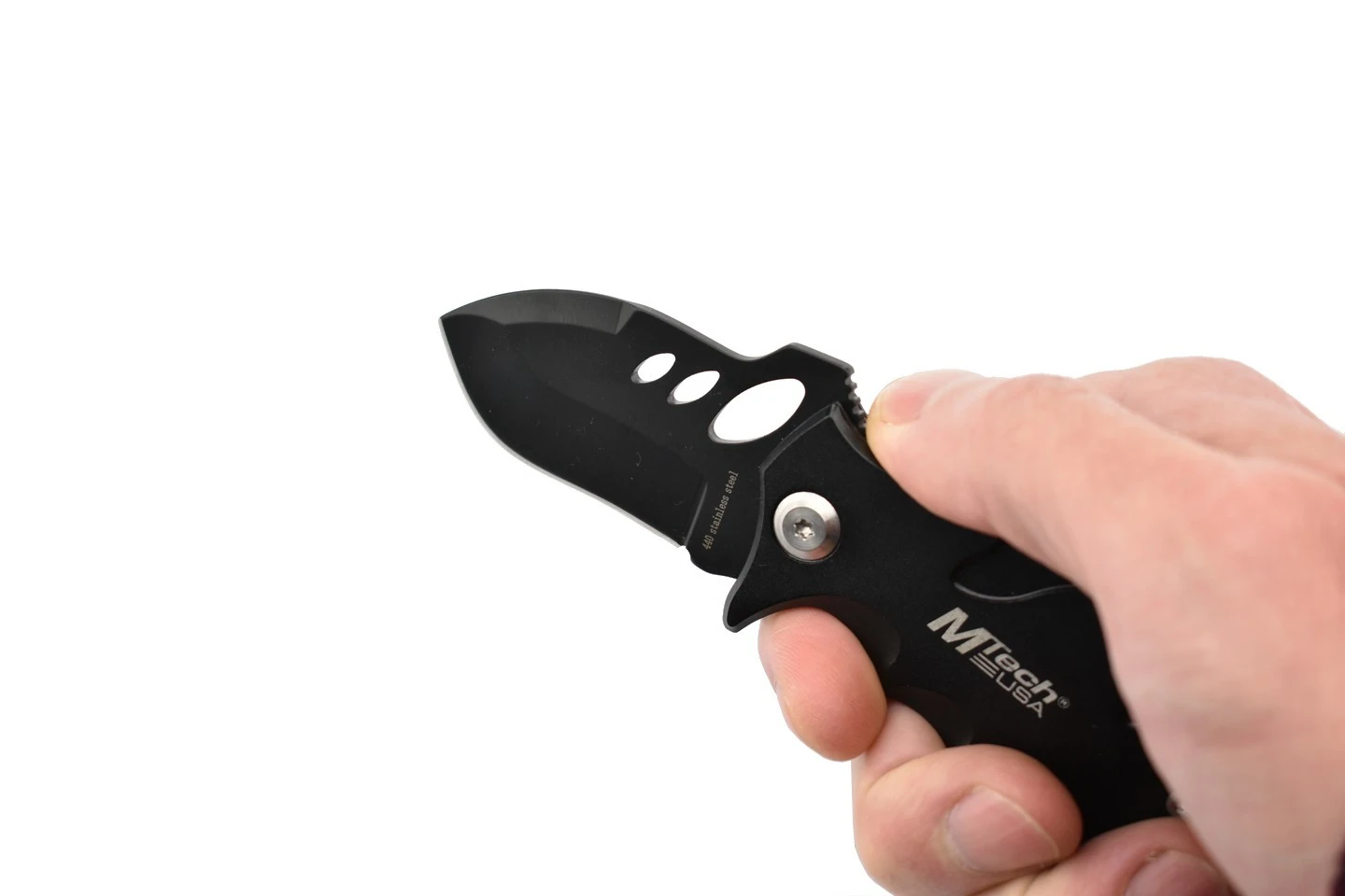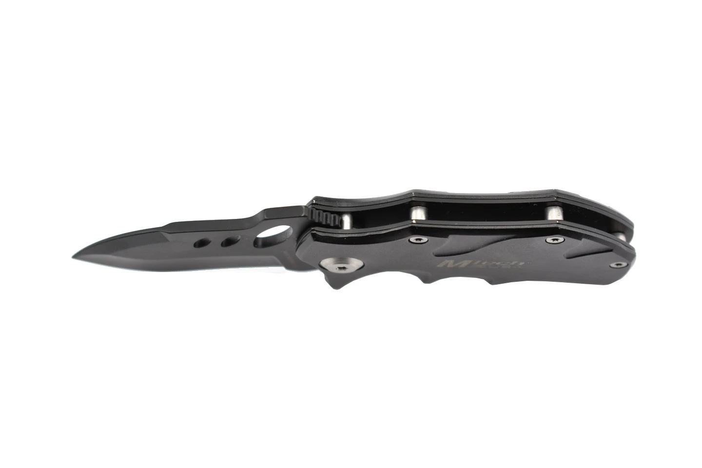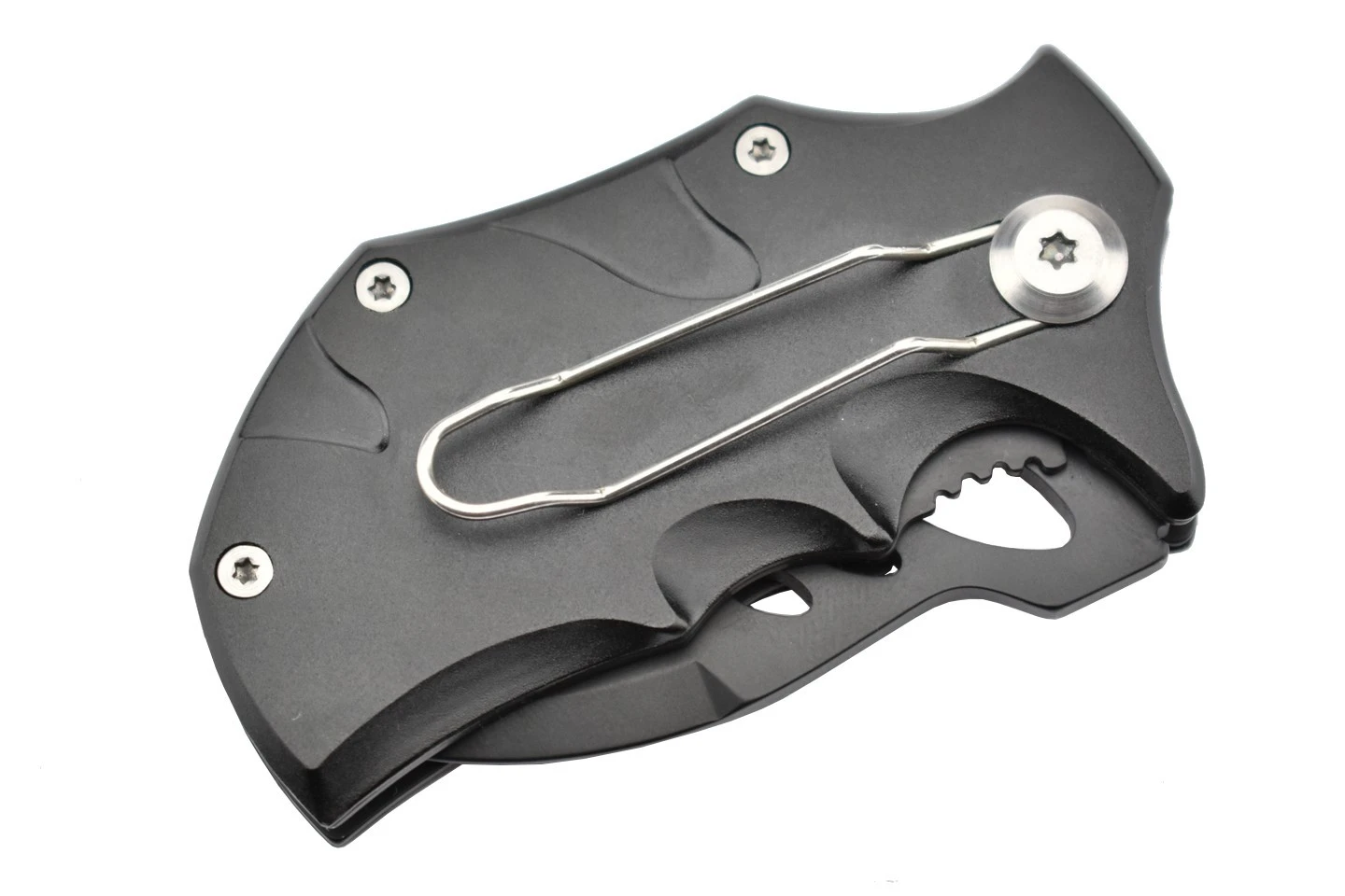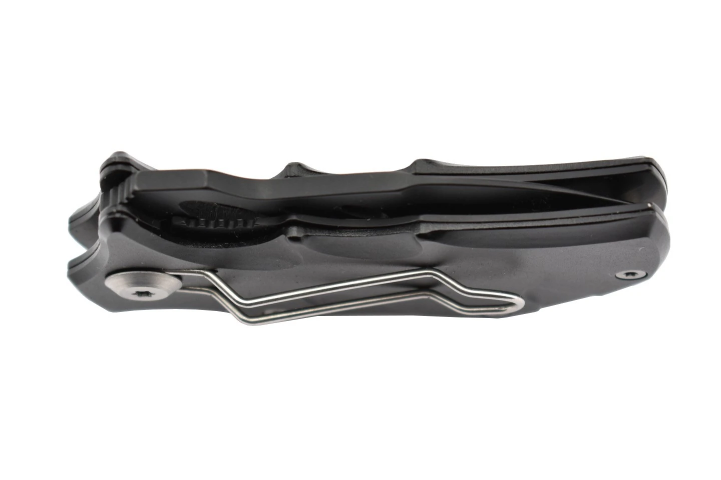 Couteau de poche à lame pliante robuste et pratique, en acier inoxydable 440. Dispose d’un mécanisme de verrouillage liner-lock et d’un clip ceinture en acier. De couleur noire, il existe également en rouge et en bleu.