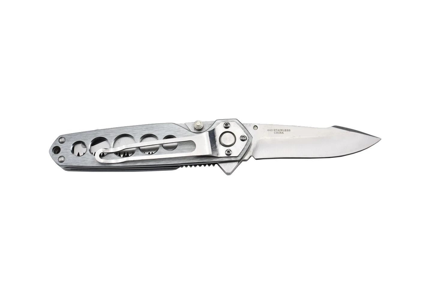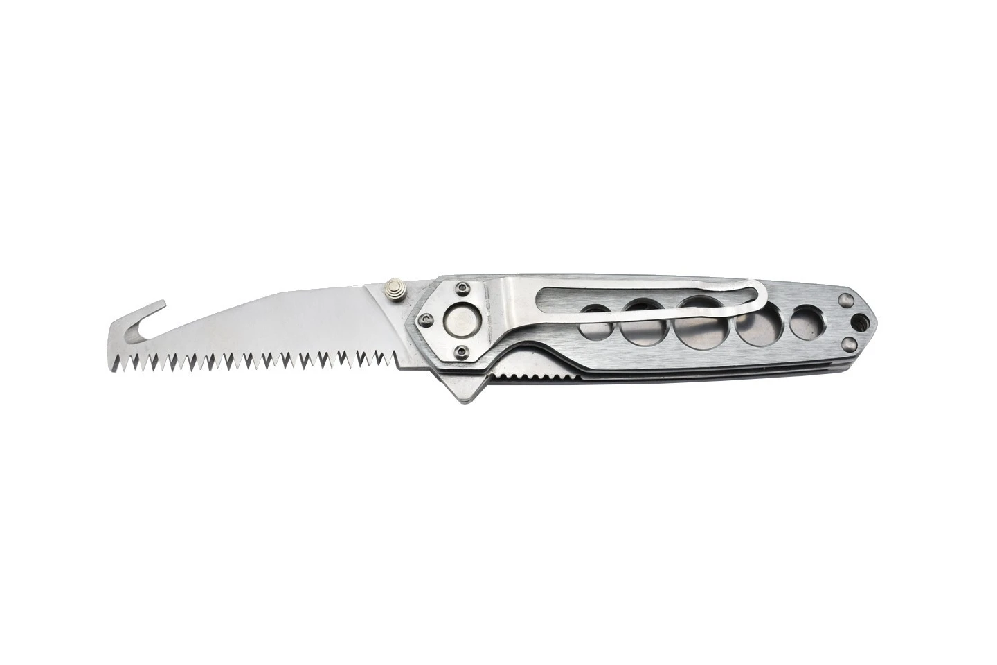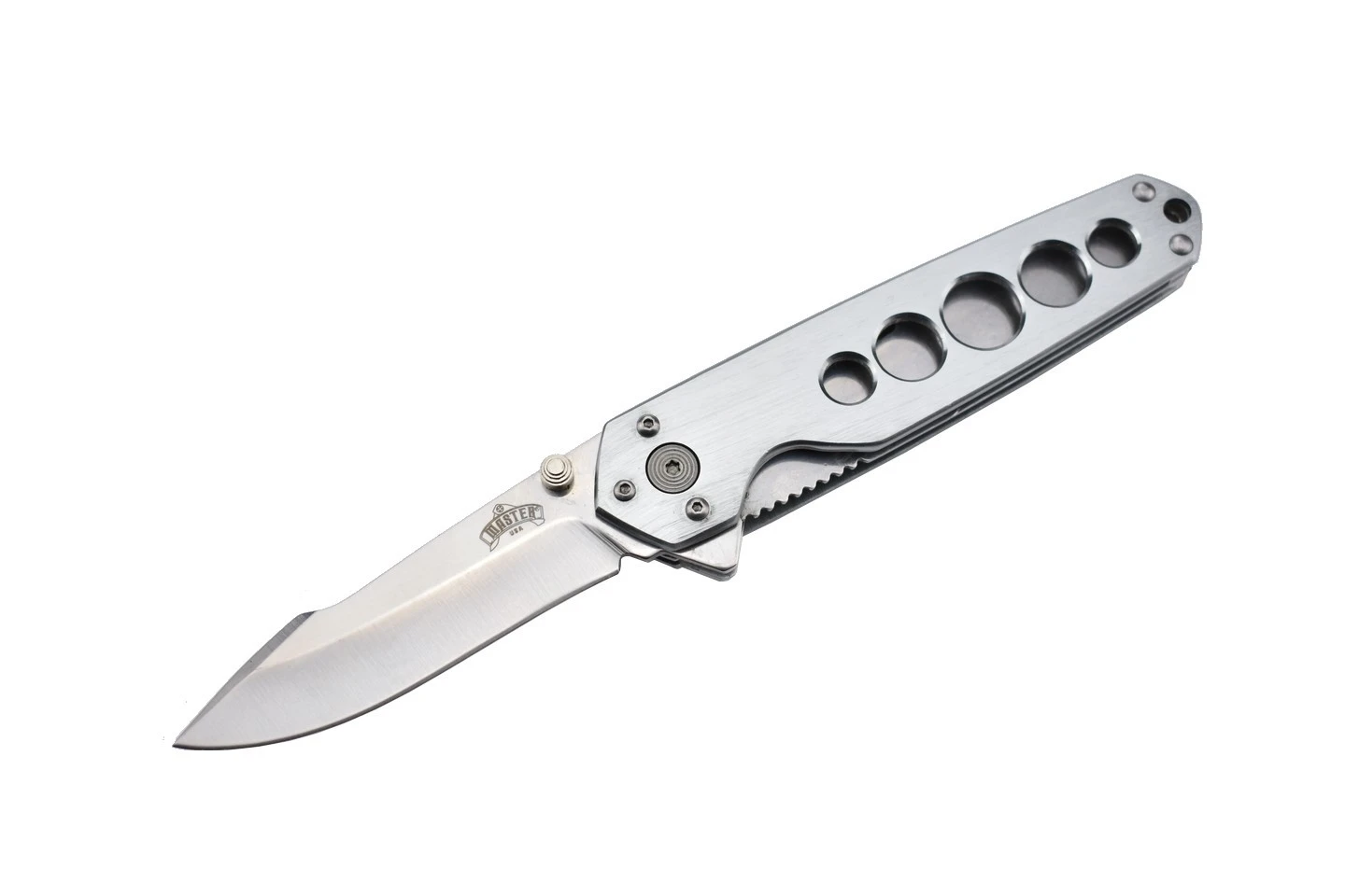 Couteau de poche pliant MTech Master USA multifonctions avec double lame en acier 440. Manche en acier. Lame classique et lame dentée (scie). Ouverture des lame avec thumb stud. Clip-ceinture en acier.