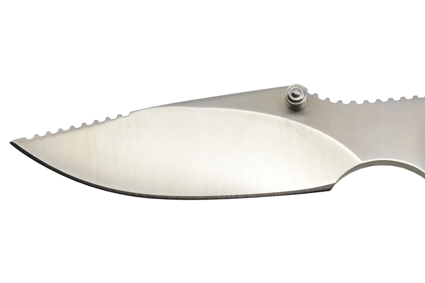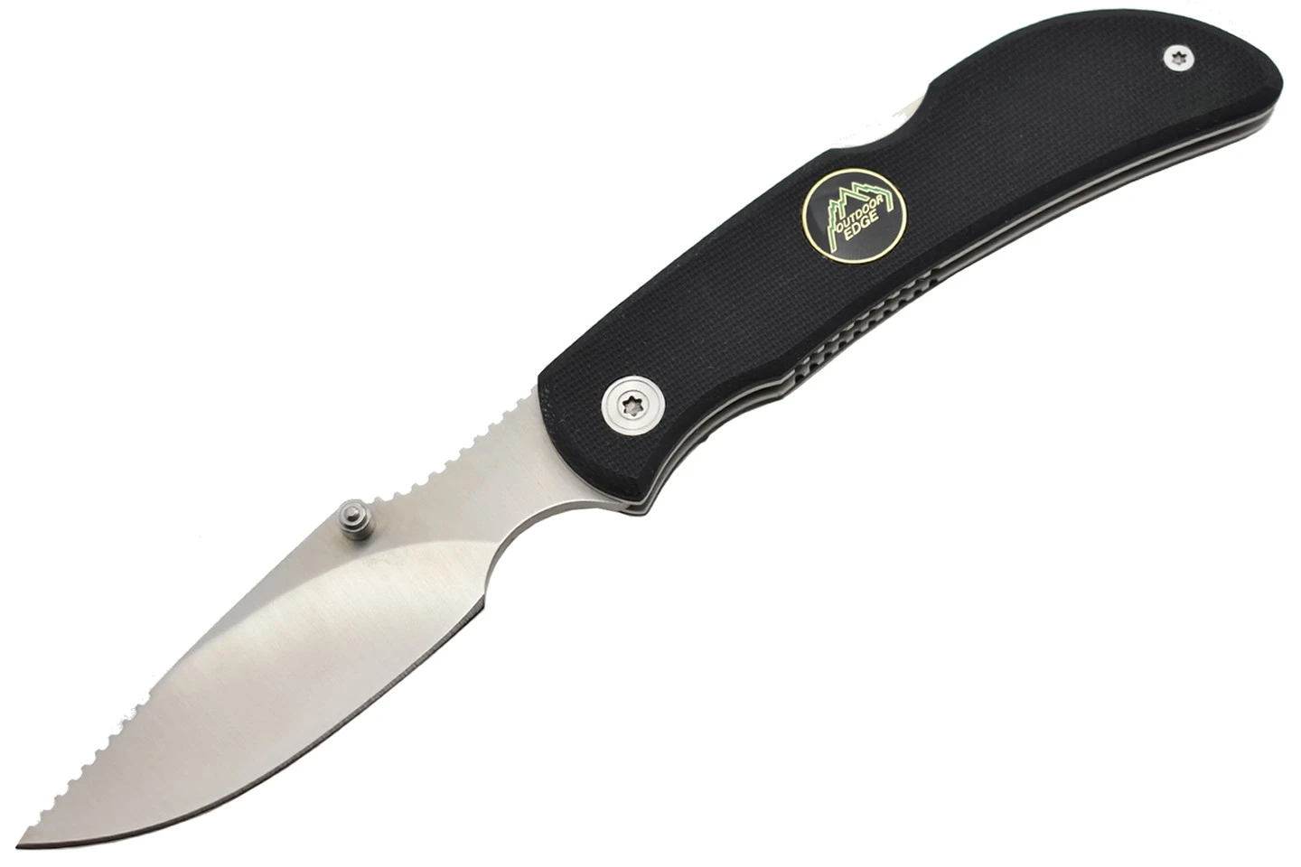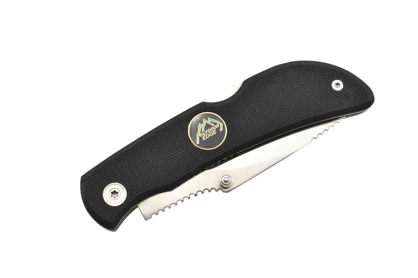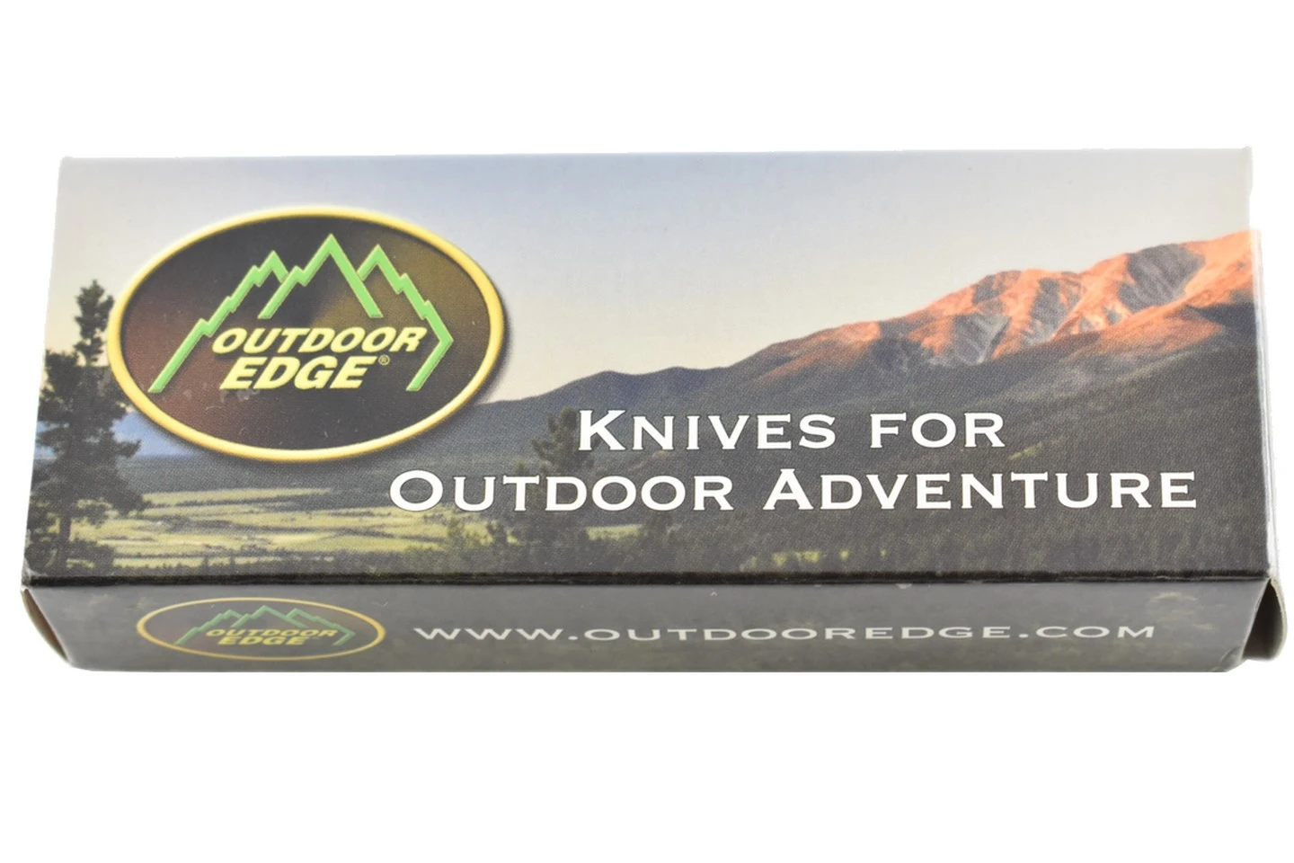La lame de ce couteau Outdoor Edge est dotée d’un repose-pouce texturé à encoches et de deux thumb stud pour une ouverture ambidextre à une main.