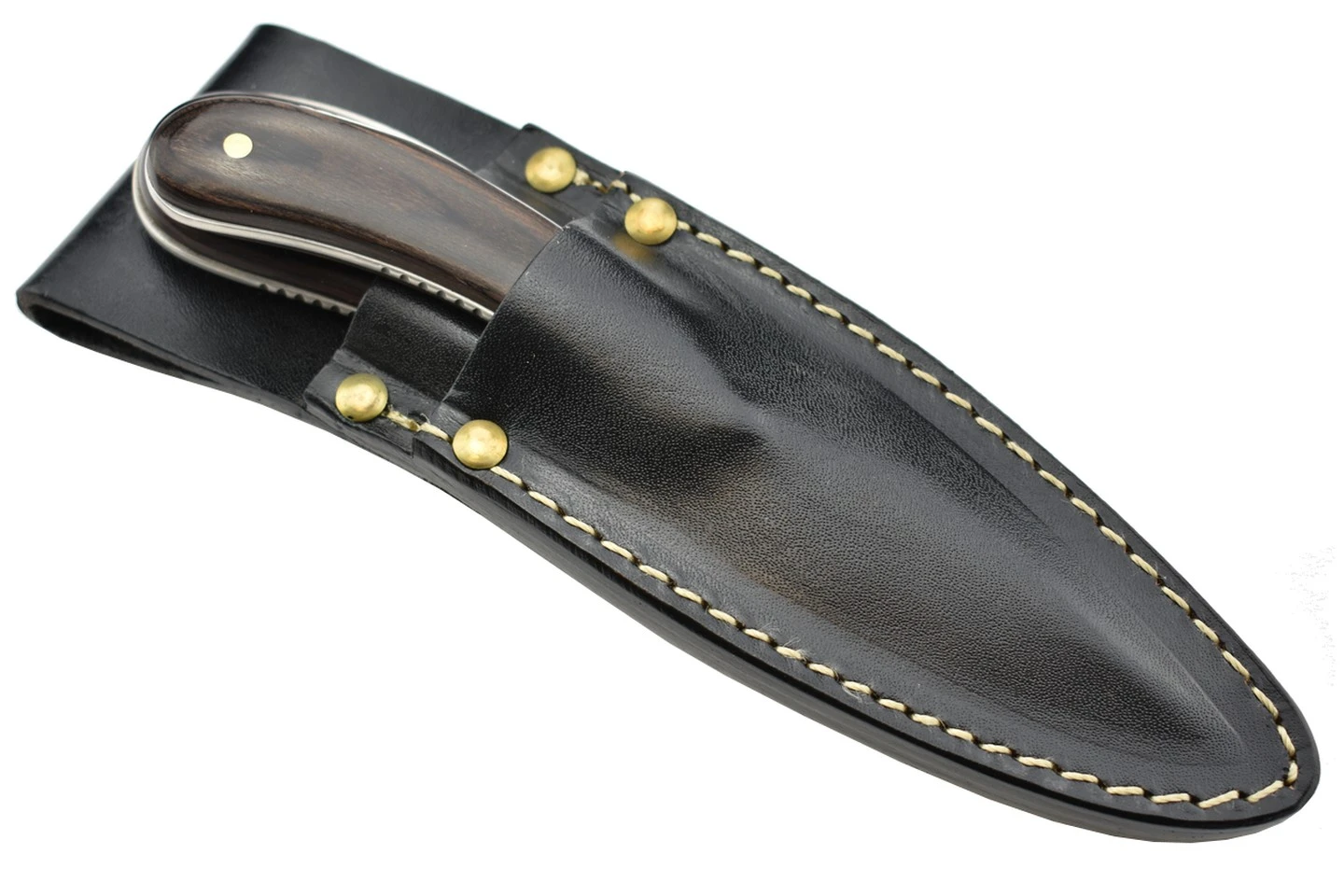 Les couteaux sont fournis avec un étui en cuir qui contient les deux couteaux, avec une boucle pour la porter à la ceinture.