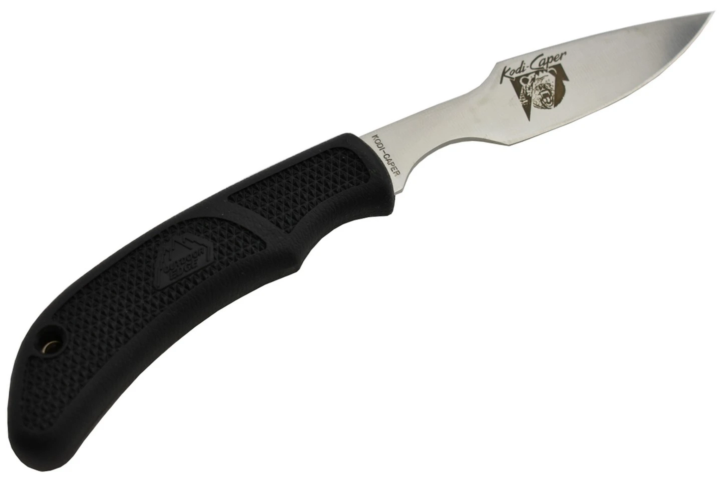 Le couteau Kodi-Caper Outdoor Edge comprend une lame en acier inoxydable AUS8A 88mm de qualité supérieure, et un manche en Kraton texturé/contourné pour une prise en main sûre.