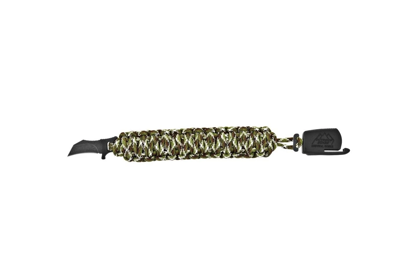 Une fois déployé, le bracelet paracorde forme la poignée du couteau.