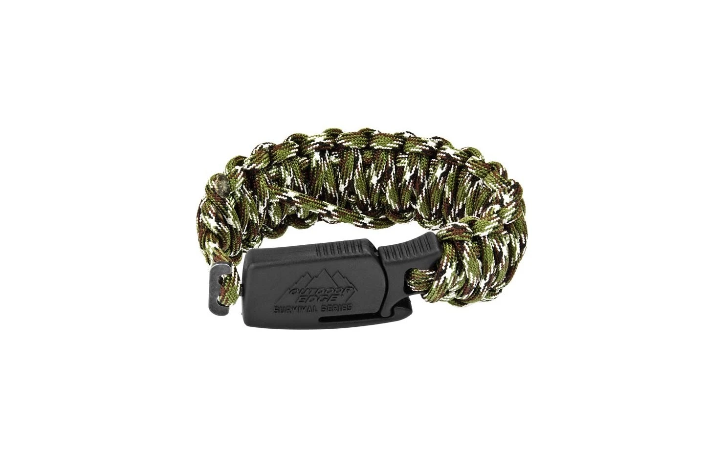 Le bracelet en paracorde attachable au poignet est disponible en trois tailles et couleurs.