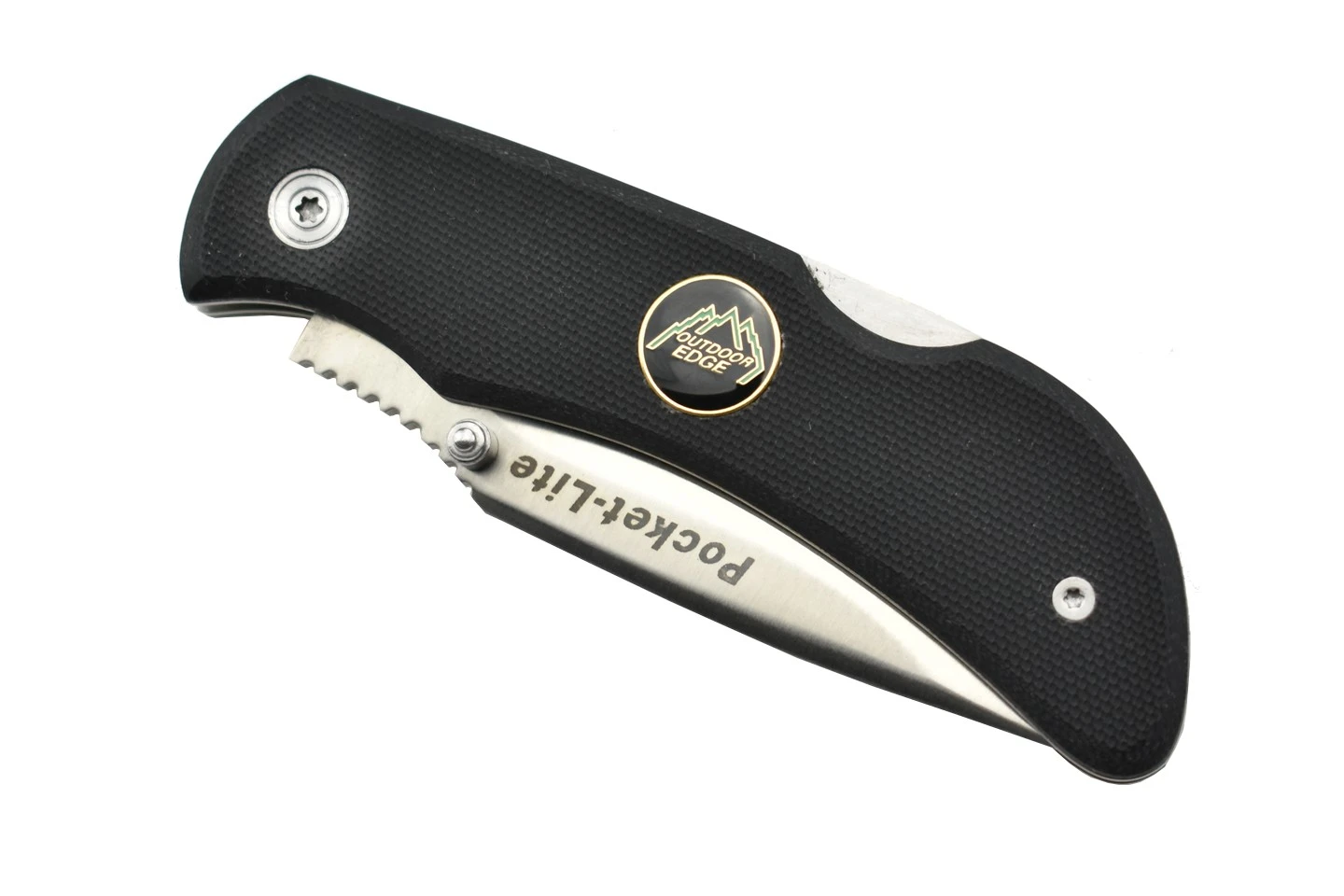 Le couteau Outdoor Edge Pocket-Lite est doté d’une lame de 80mm semi-denteléeen acier inoxydable AUS8.