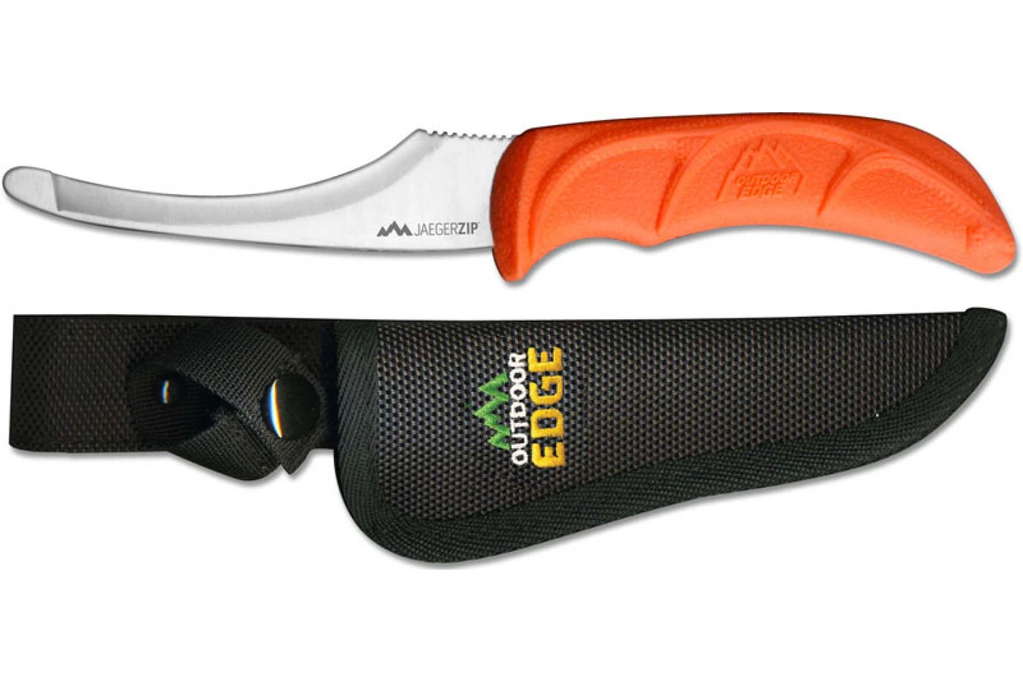 Les guides et les chasseurs professionnels préfèrent la lame d’éviscération signature d’Outdoor Edge car elle coupe sous la peau pour ouvrir un gibier comme une fermeture éclair et la pointe émoussée empêche les organes internes perforés qui peuvent gâcher la viande de gibier fraîche.