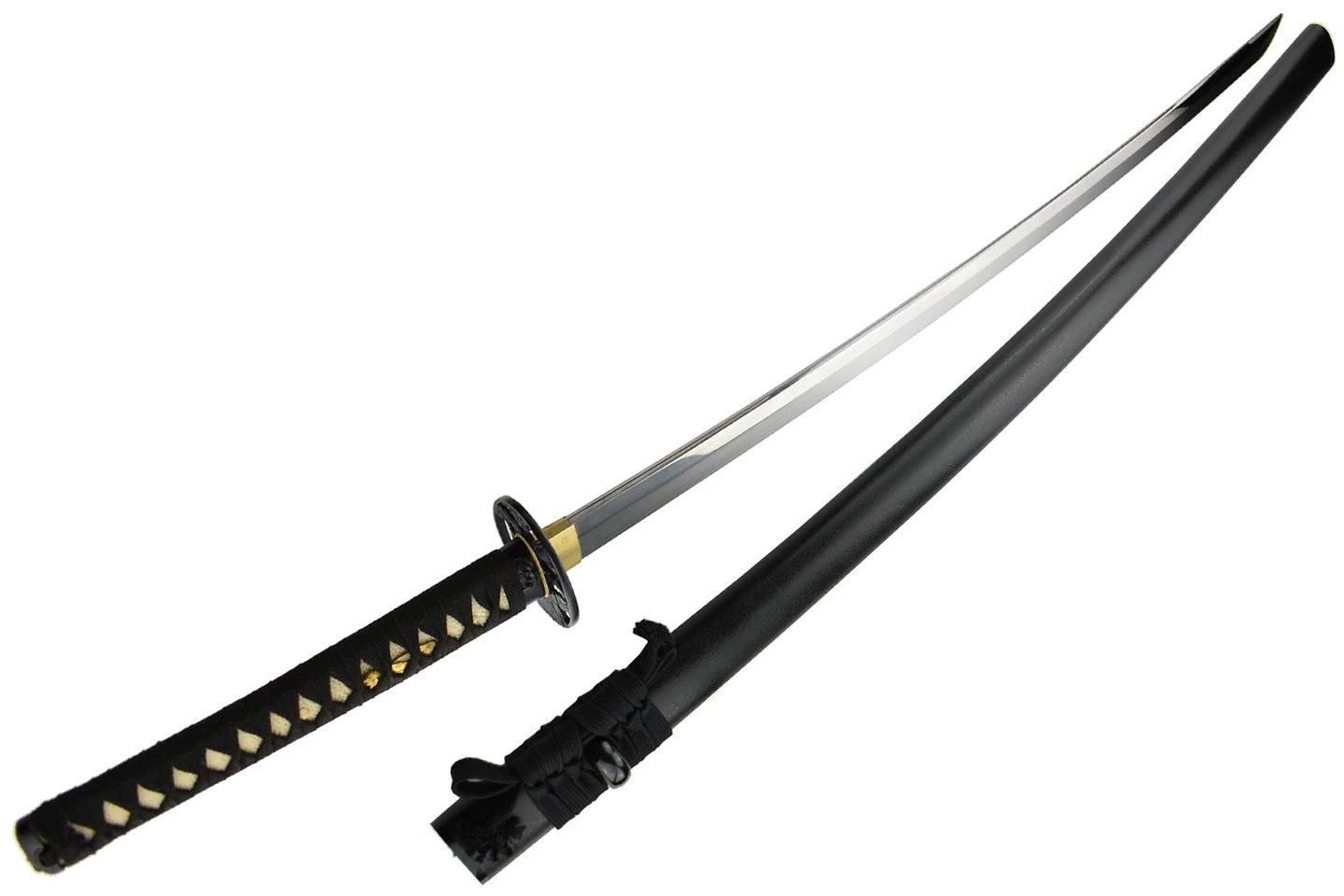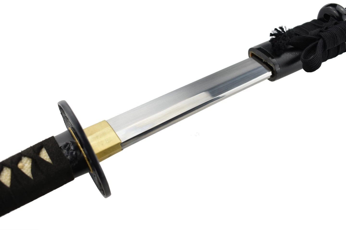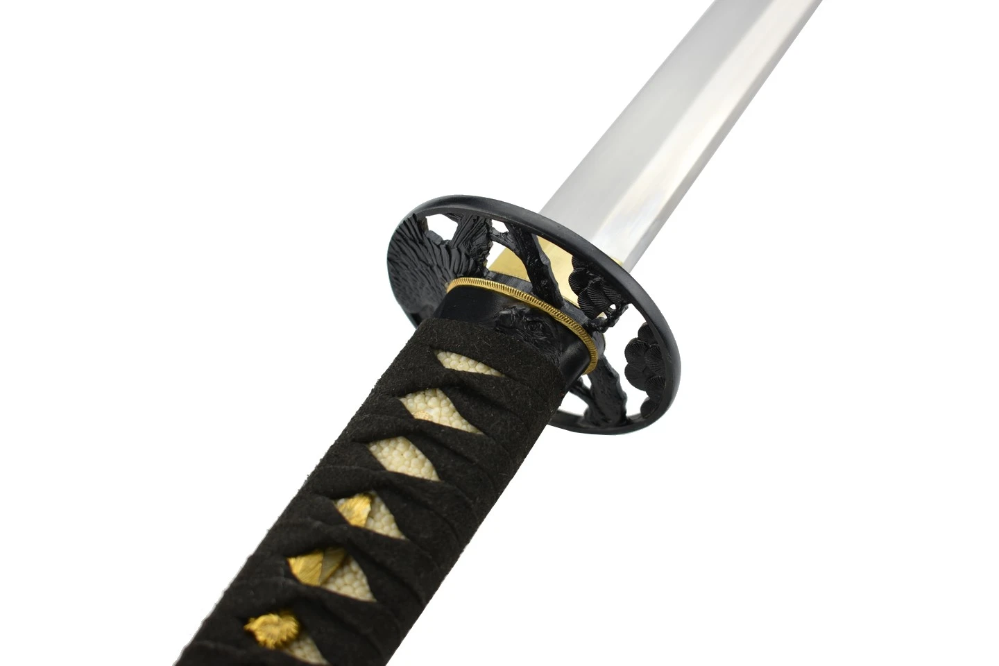 Katana robuste et puissant équipé d’une lame en acier forgé 5160 à haute teneur en carbone et une poignée (Tsuka) en bois de haute qualité avec peau de raie véritable.