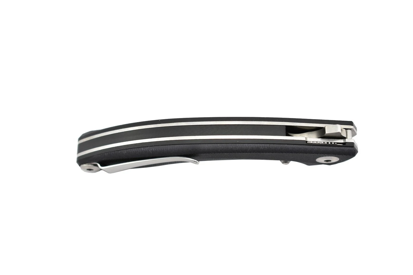 Couteau de poche pliant composé d’une lame en acier 14C28N drop point finition satinée, et d’un manche en G10 noir avec texture anti-dérapante. Système de verrouillage liner lock, ouverture de lame par flipper et thumb stub, verrou de sécurité, clip-ceinture.