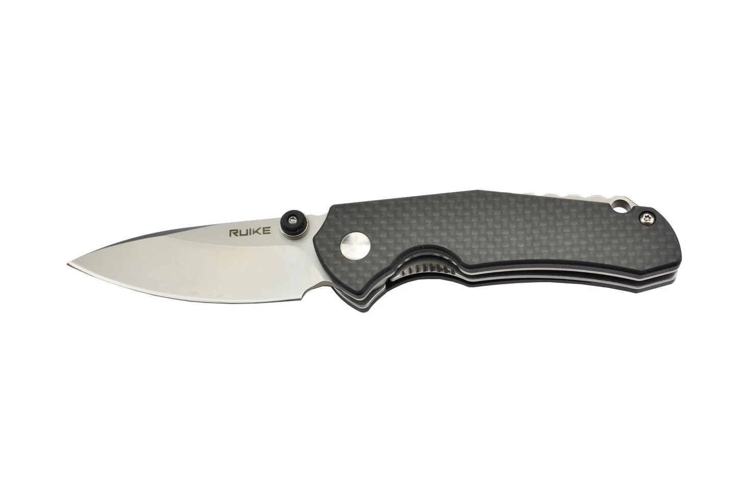 Couteau de poche pliant composĂ© d’une lame en acier 14C28N drop point finition mat, et d’un manche en G10 recouvert de fibre de carbone. Système de verrouillage frame lock, ouverture de lame par flipper et double thumb stub, clip-ceinture.