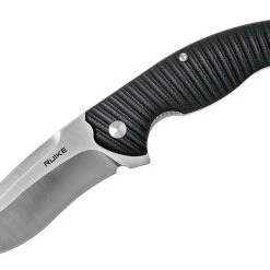 Couteau de poche pliant composé d’une lame en acier 14C28N drop point finition satinée, et d’un manche en G10 noir avec texture anti-dérapante. Système de verrouillage liner lock, ouverture de lame par flipper, verrou de sécurité, clip-ceinture.